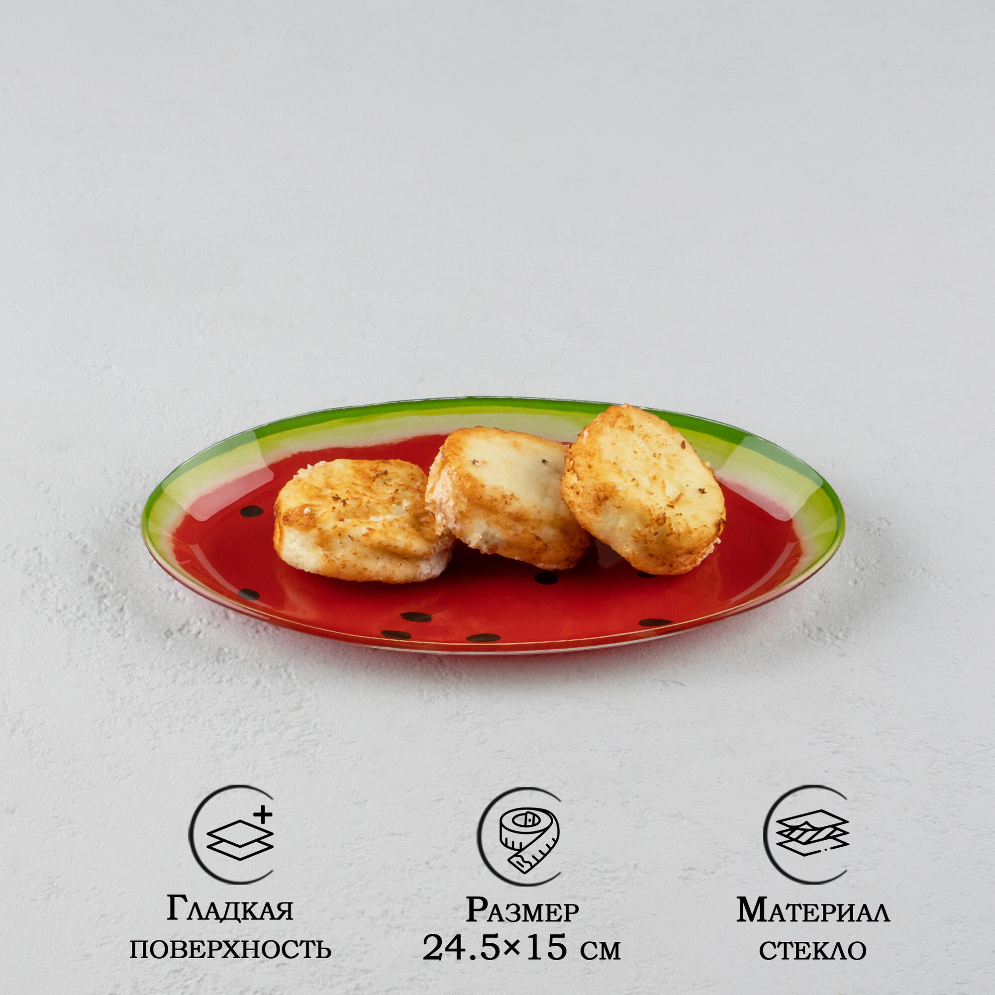 Блюдо сервировочное стеклянное овальное Доляна «Сладкий арбуз», 24,5×15 см, цвет красный