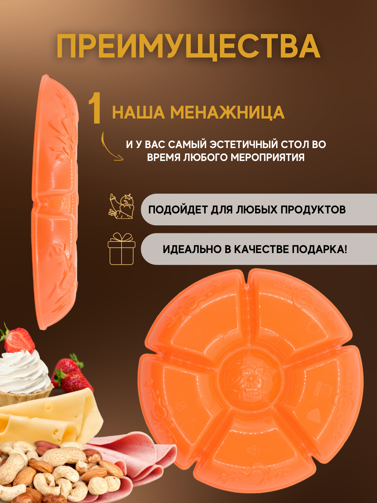 Менажница большая пластиковая МБП-01 (оранжевый) интересное:
