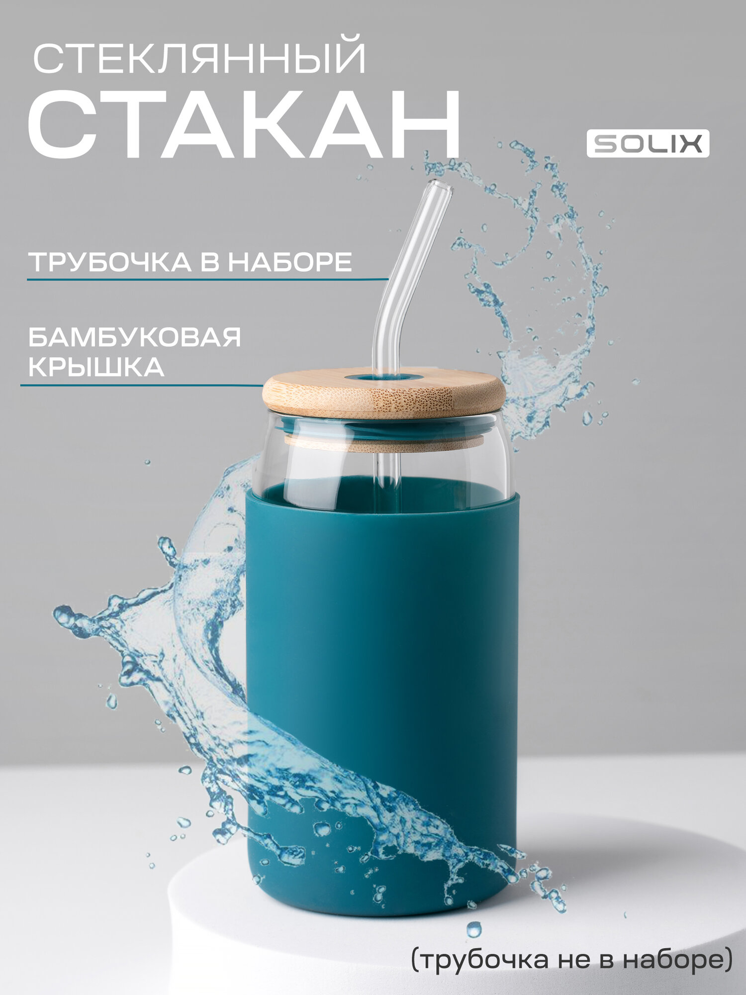 Стеклянный стакан с бамбуковой крышкой, прозрачный