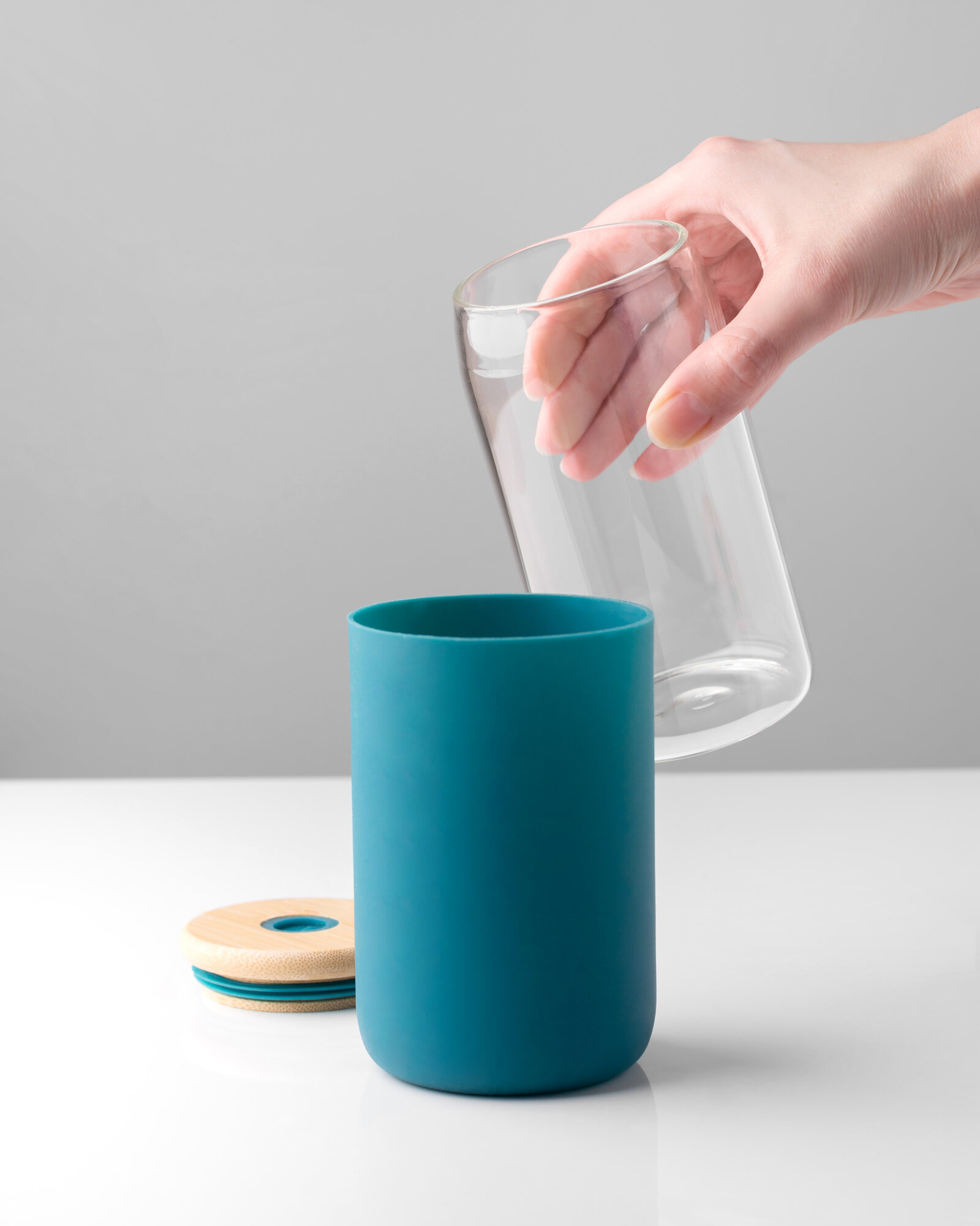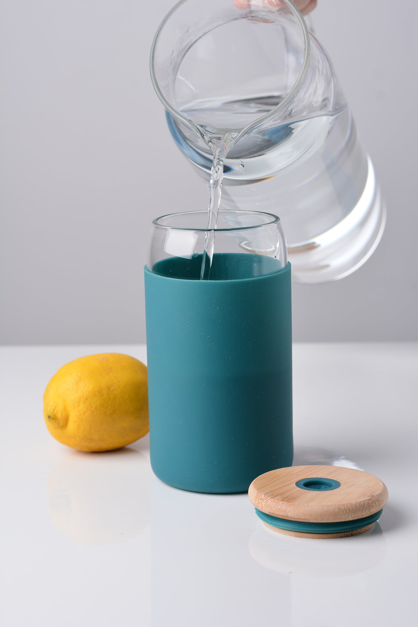 Стеклянный стакан с бамбуковой крышкой, зеленый