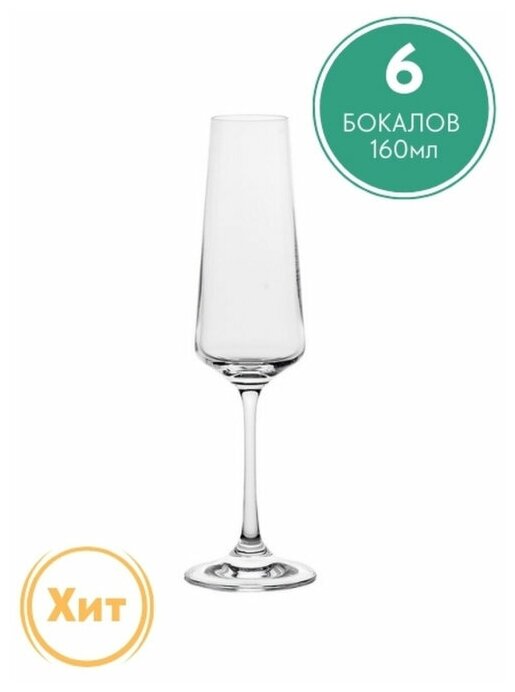 Бокалы для шампанского 160 мл 6 шт Crystalite Bohemia "Наоми /Без декора" / 001456