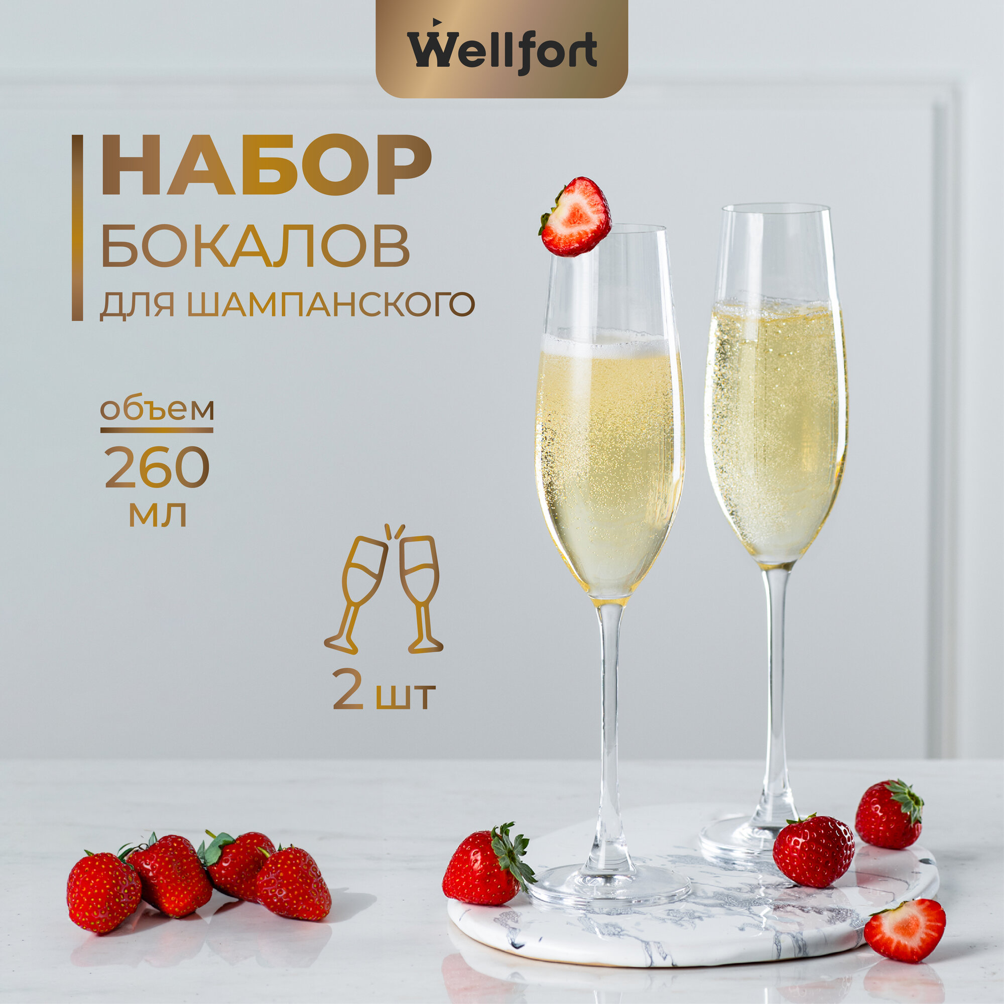 Набор бокалов для шампанского из хрустального стекла Wellfort Royal 260 мл. 2 шт. интересное: