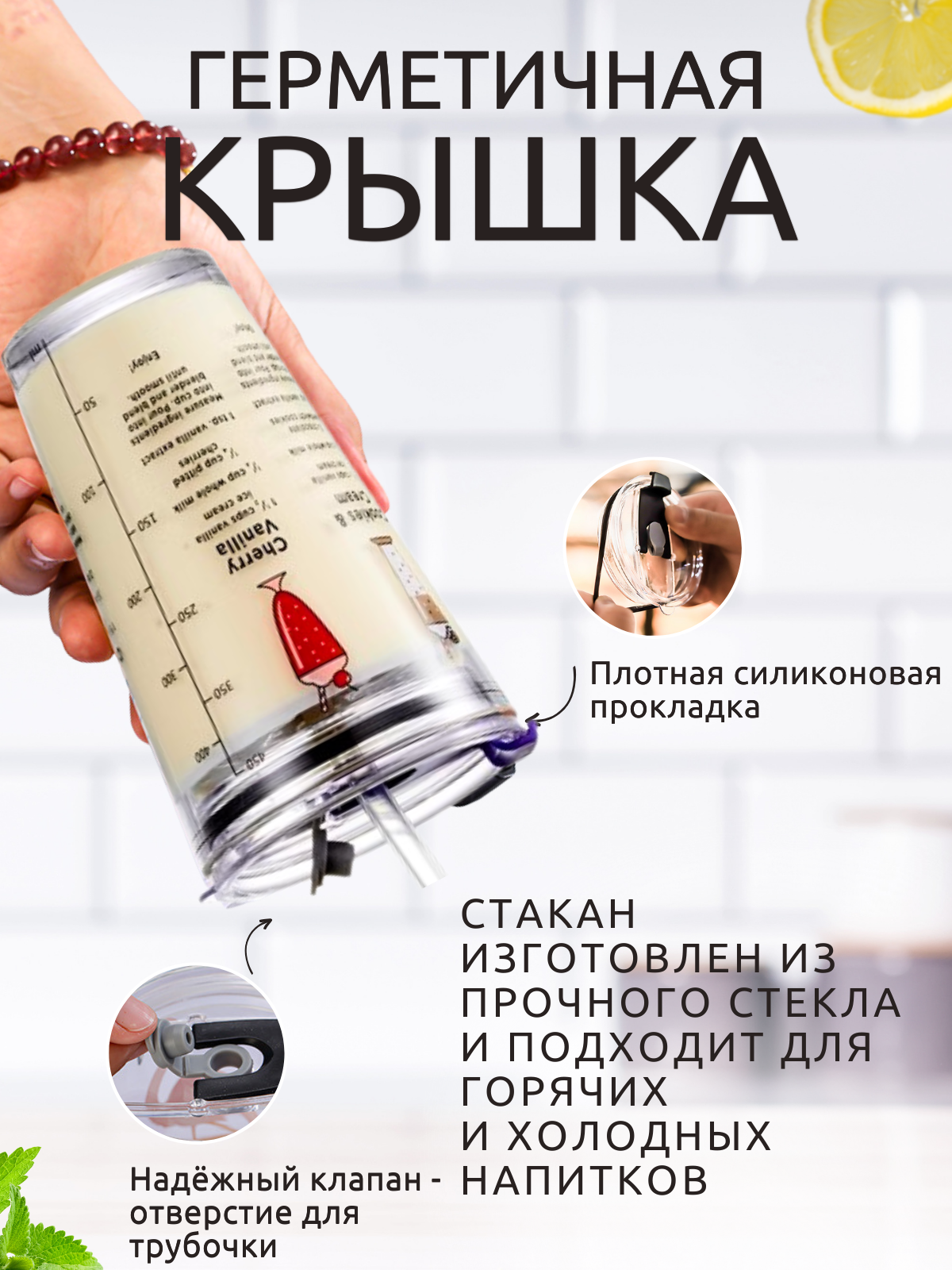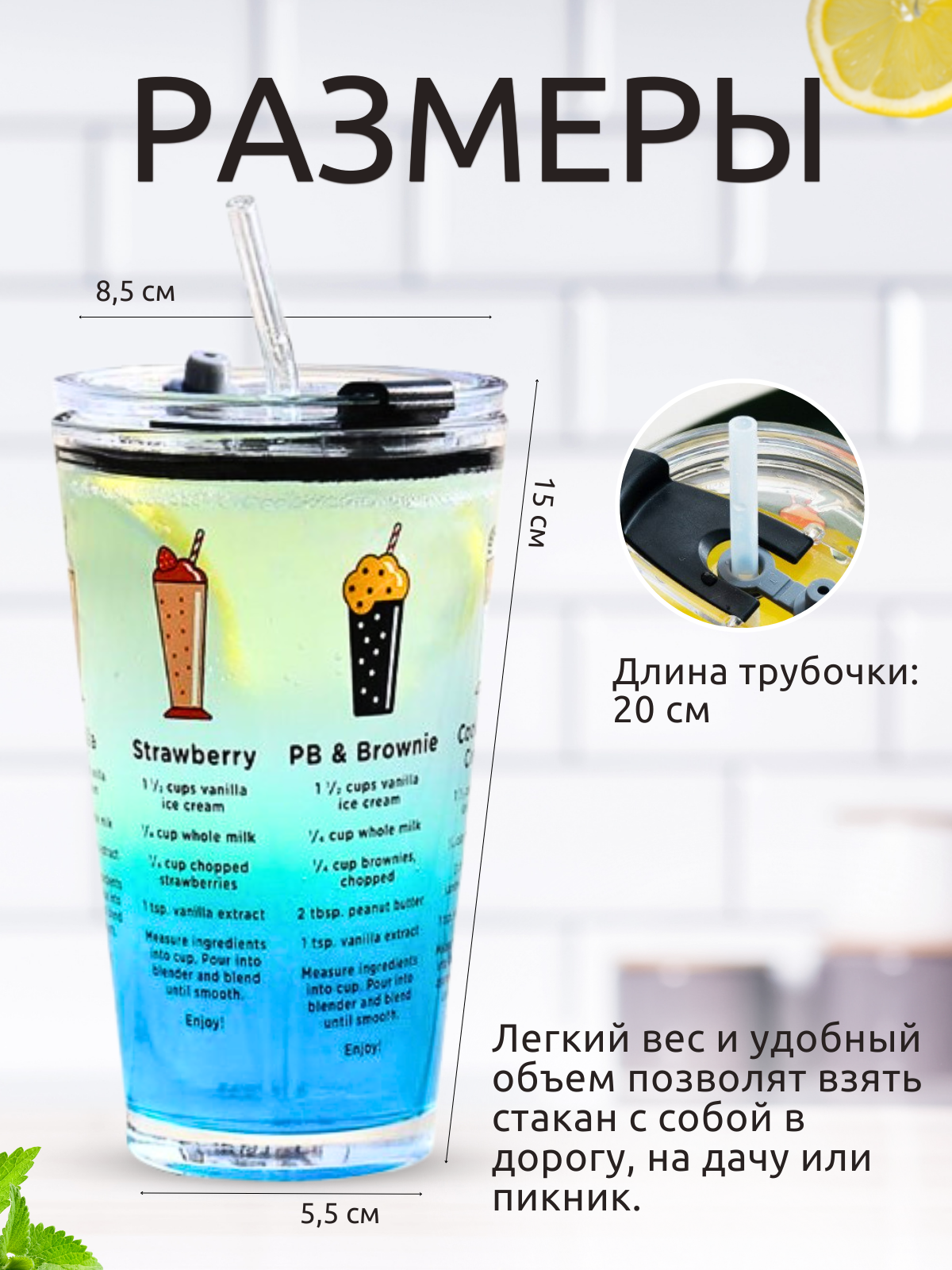 Стеклянный стакан с крышкой трубочкой 450 мл Стакан для напитков интересное: