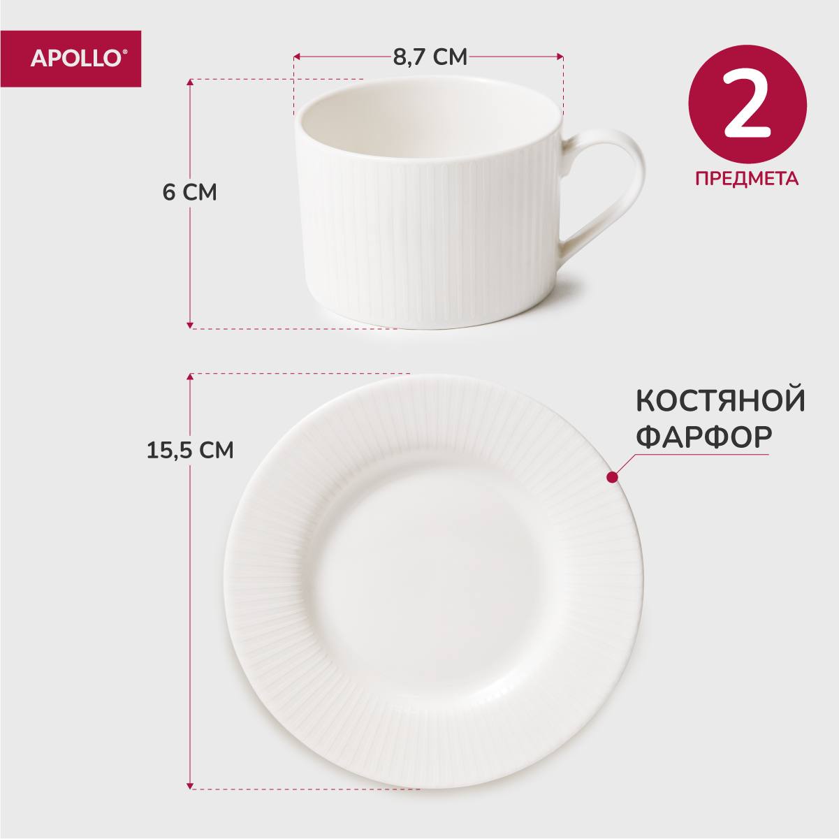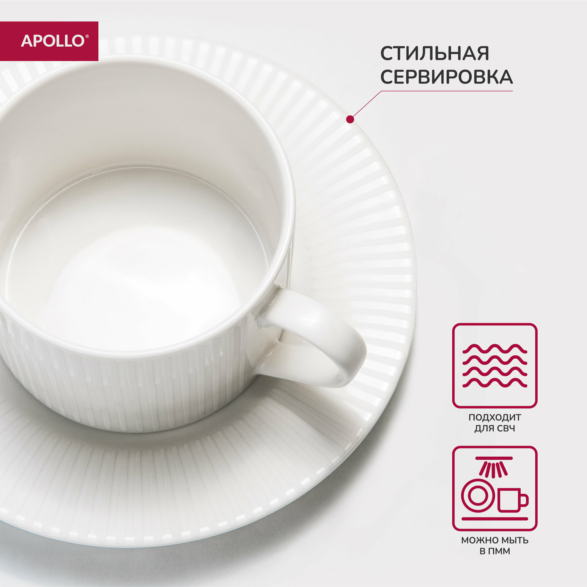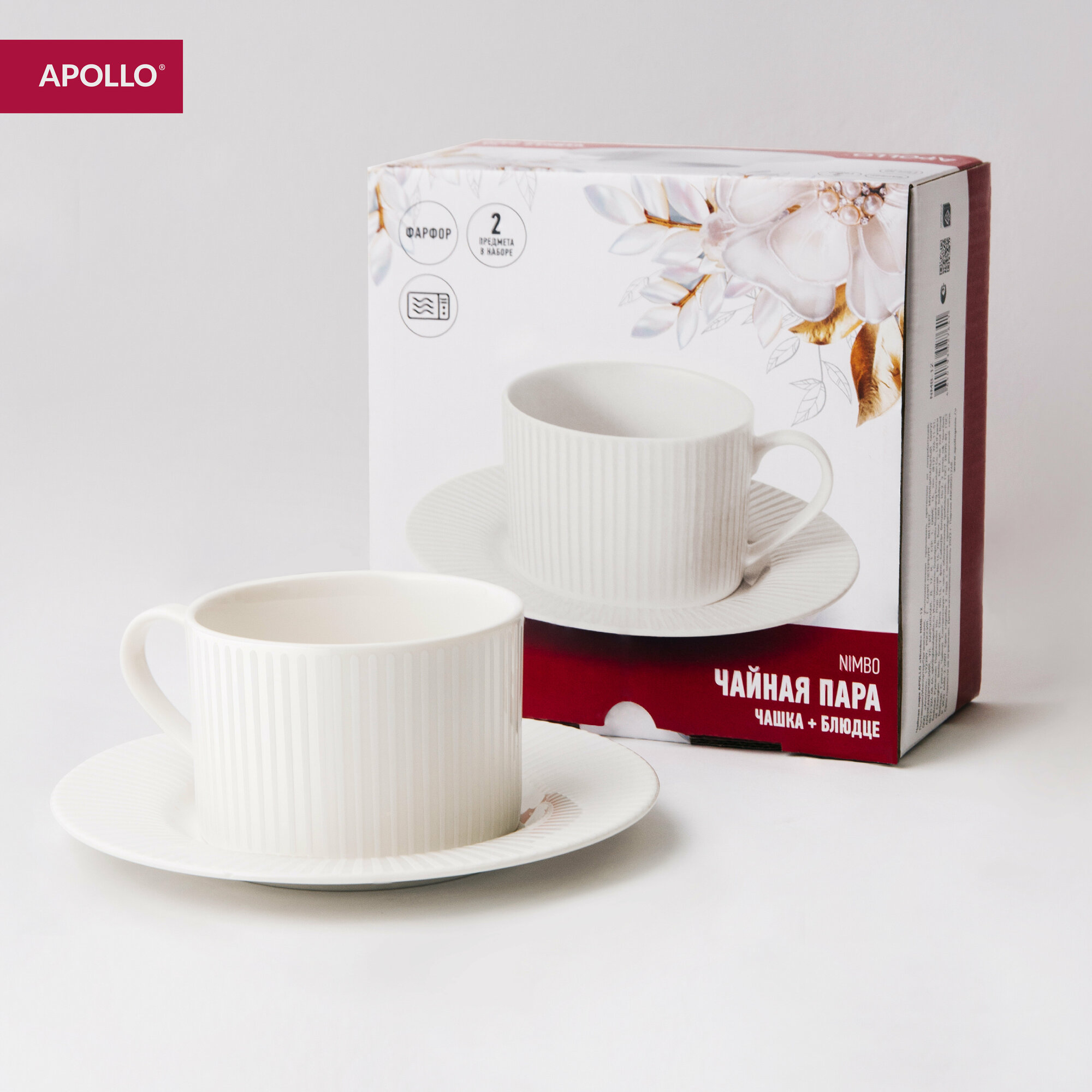 Чайная пара, чашка с блюдцем из костяного фарфора 220 мл APOLLO "Nimbo" интересное: