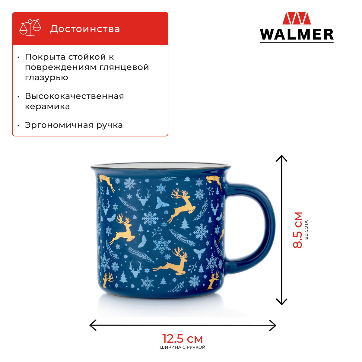 Купить Кружка подарок на Новый Год Walmer Deers, 370 мл, цвет синий