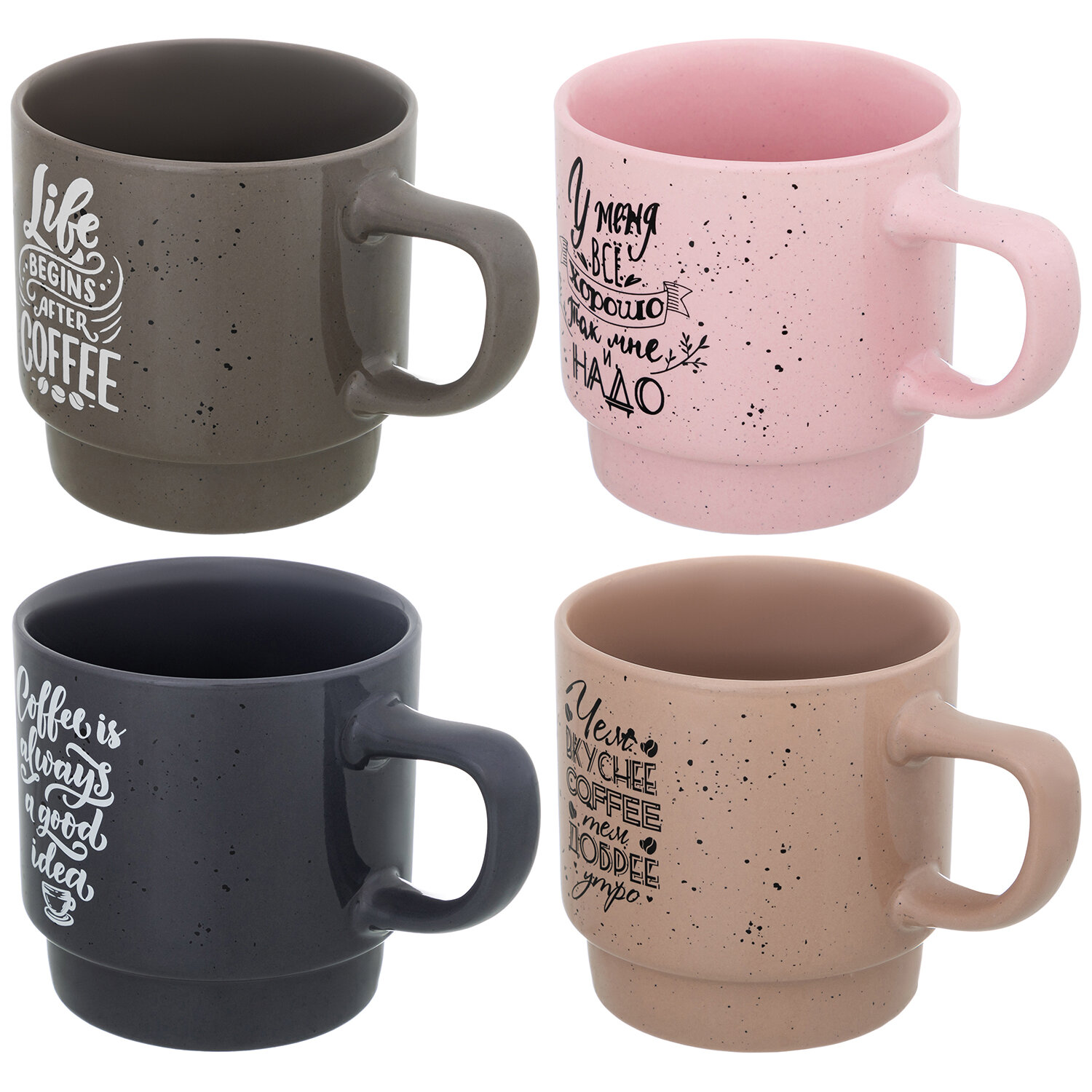 Кружка / чашка для кофе, чая 4 шт 380 мл 13,5х9х9 см Elan Gallery Кофе на металлической подставке, набор интересное:
