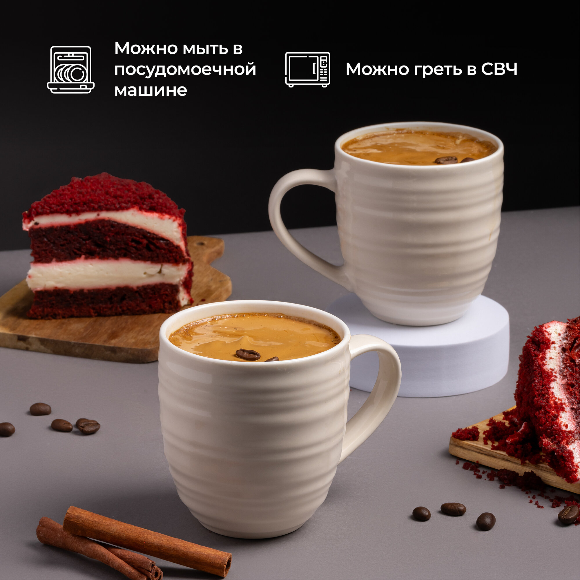 Кружки набор для чая и кофе из высококачественной керамики 355 мл 6 шт