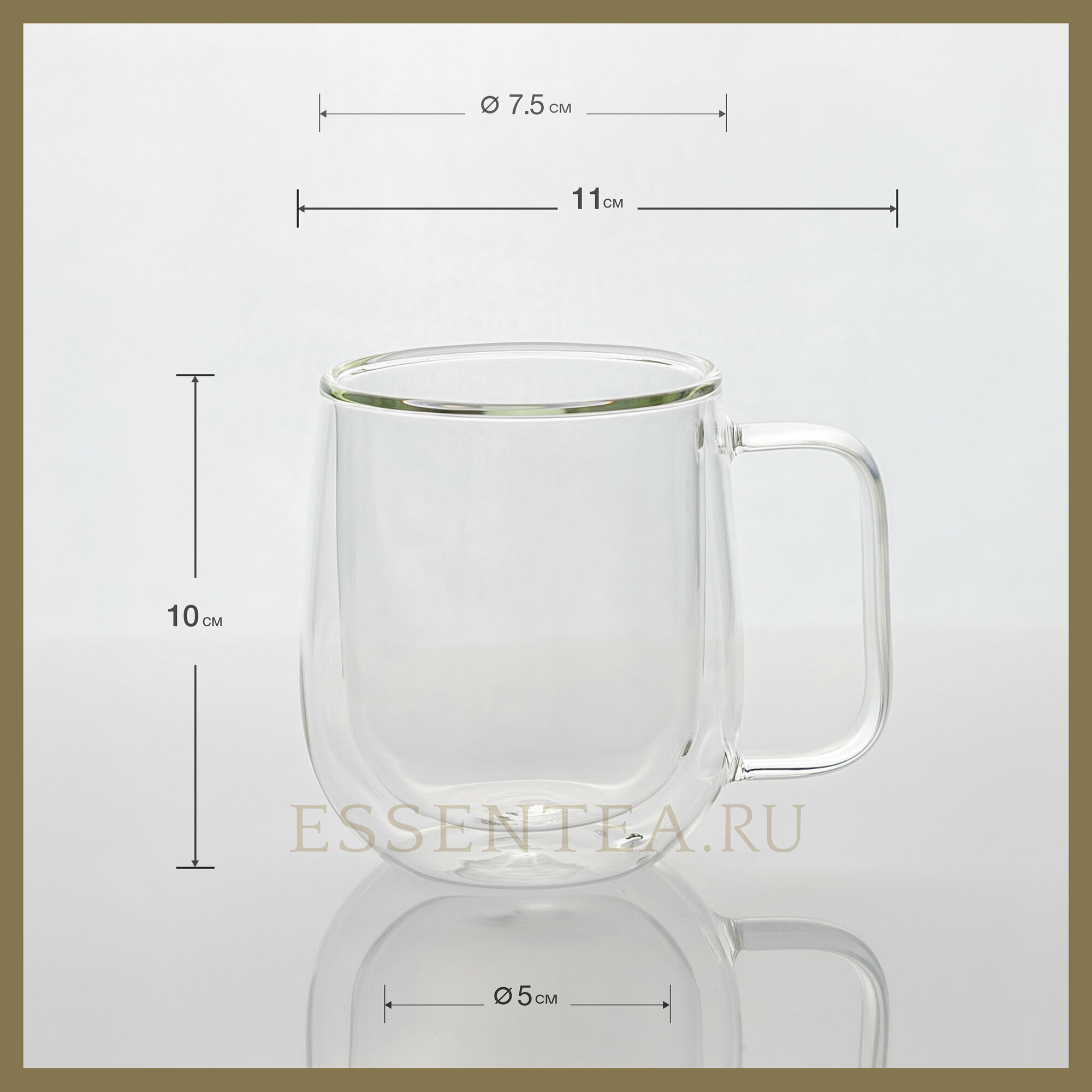 Essentea / Стеклянная чашка с двойным дном с ручкой 350мл