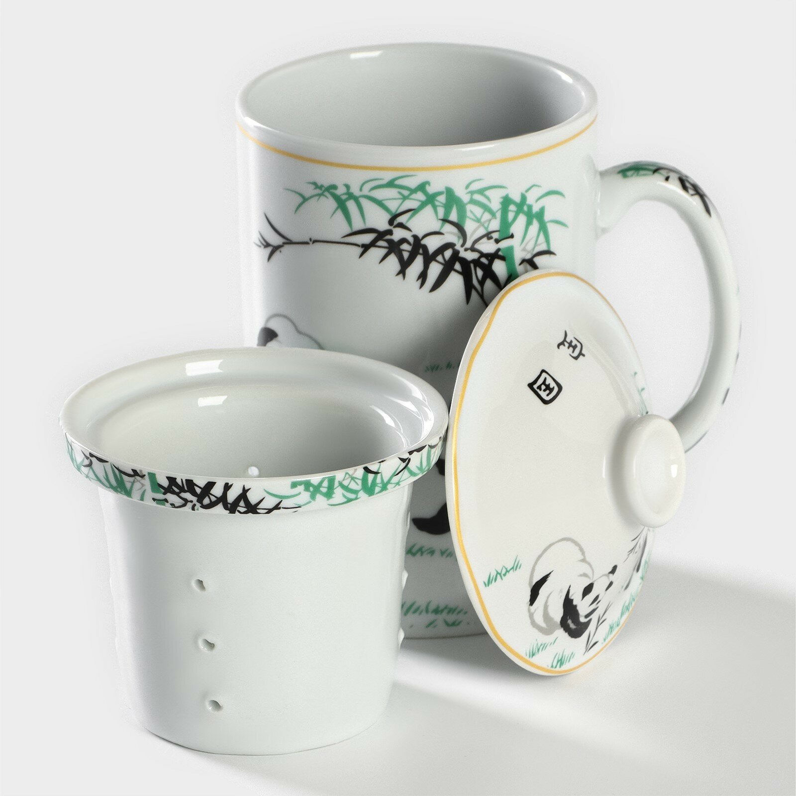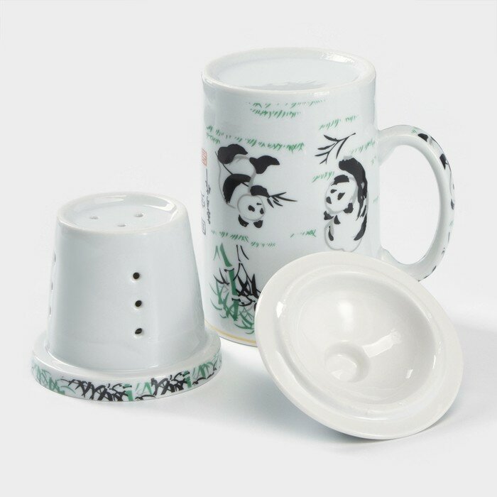 Купить Кружка Панды, 300 мл, с крышкой и керамическим ситом 3889222 .