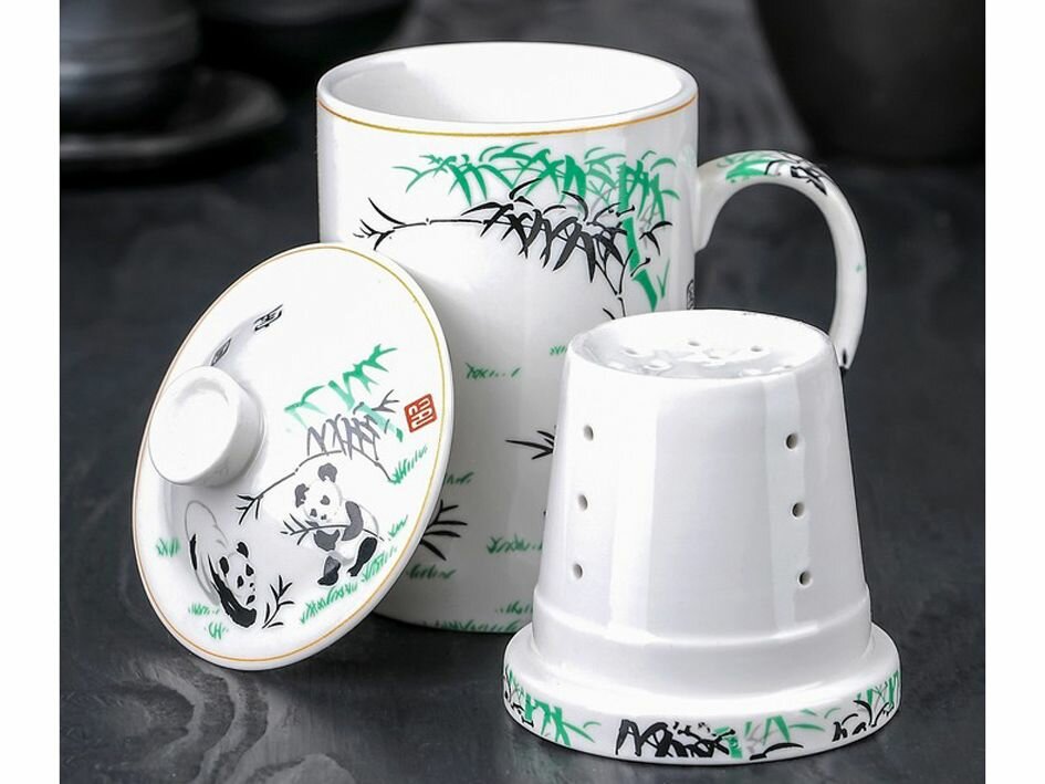 Кружка Панды, 300 мл, с крышкой и керамическим ситом 3889222 . интересное: