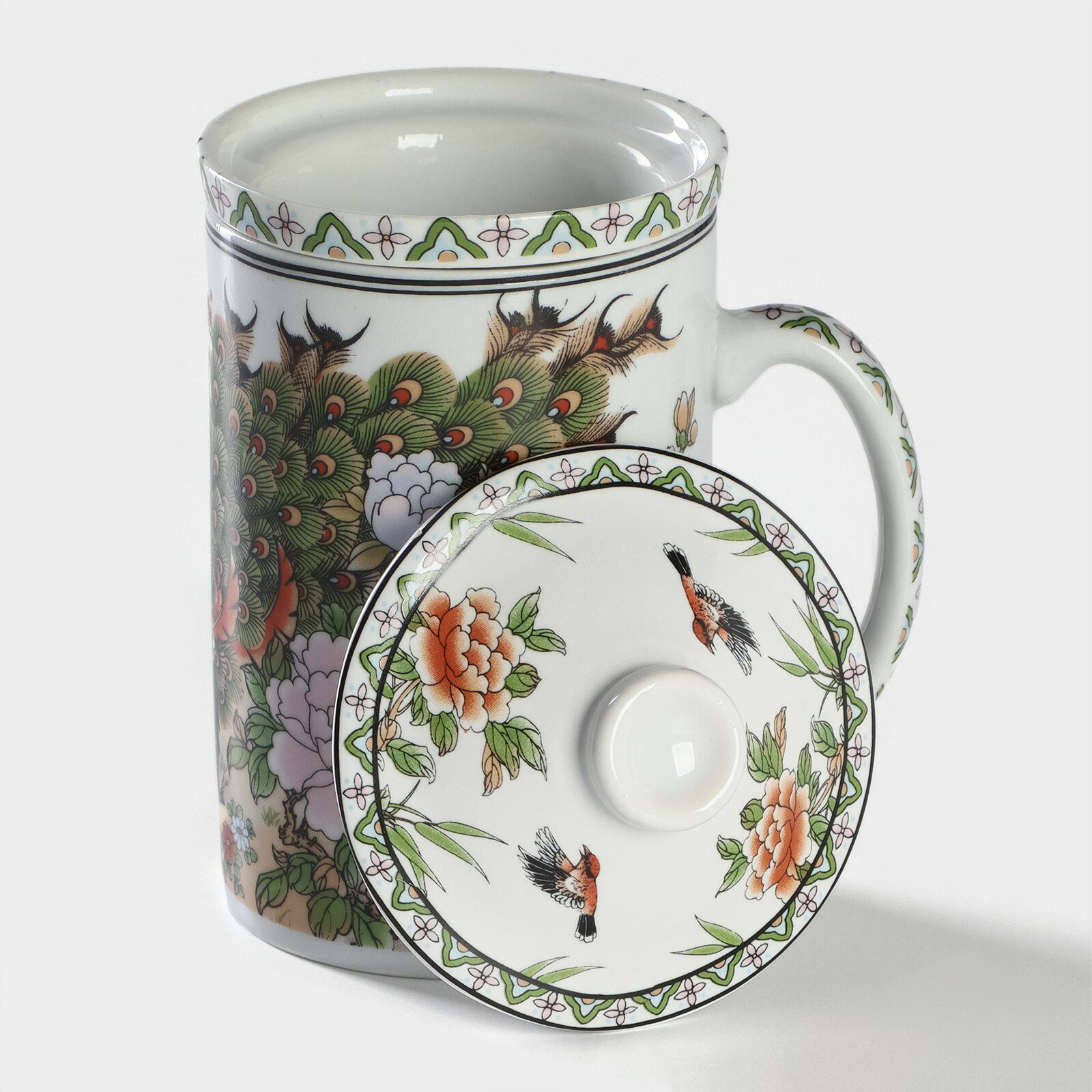 Кружка керамическая с крышкой и ситом «Цветение роз», 300 мл