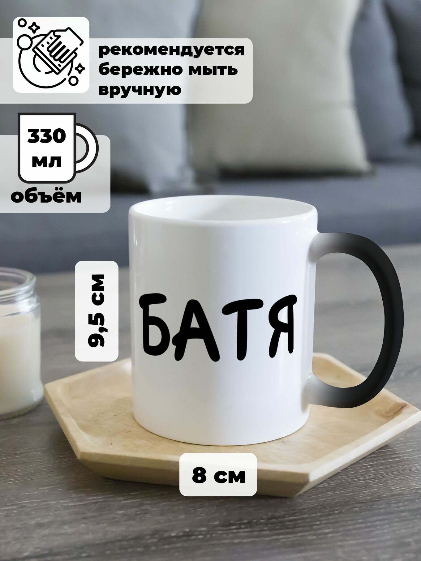 Ниже Вы можете прочитать отзывы на Кружка хамелеон с приколом подарок папе Батя, ознакомится с подробными характеристиками, посмотреть интересные обзоры и фотографии на Кружка хамелеон с приколом подарок папе Батя.