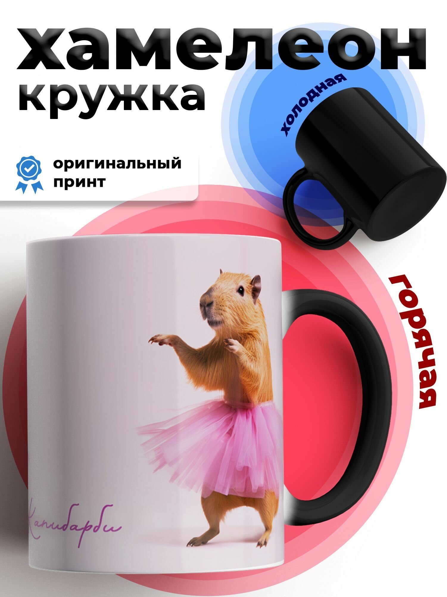 СохранитьКружка хамелеон с принтом и надписью "Две Капибарби" интересное:
