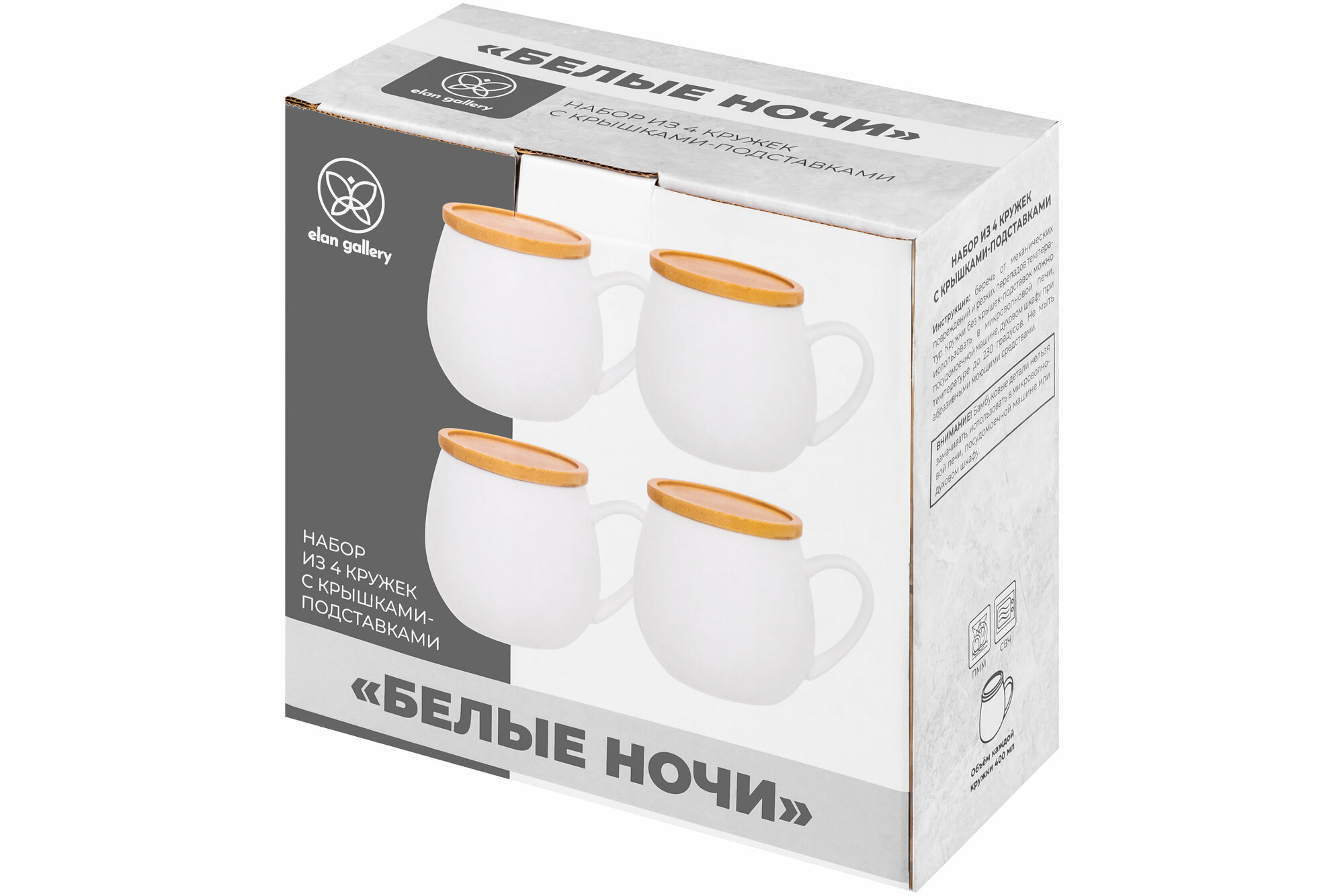 Купить Кружка / чашка / для чая, кофе, капучино 4 шт 400 мл Elan Gallery "Белые ночи" бочонок + крышка-подставка, набор