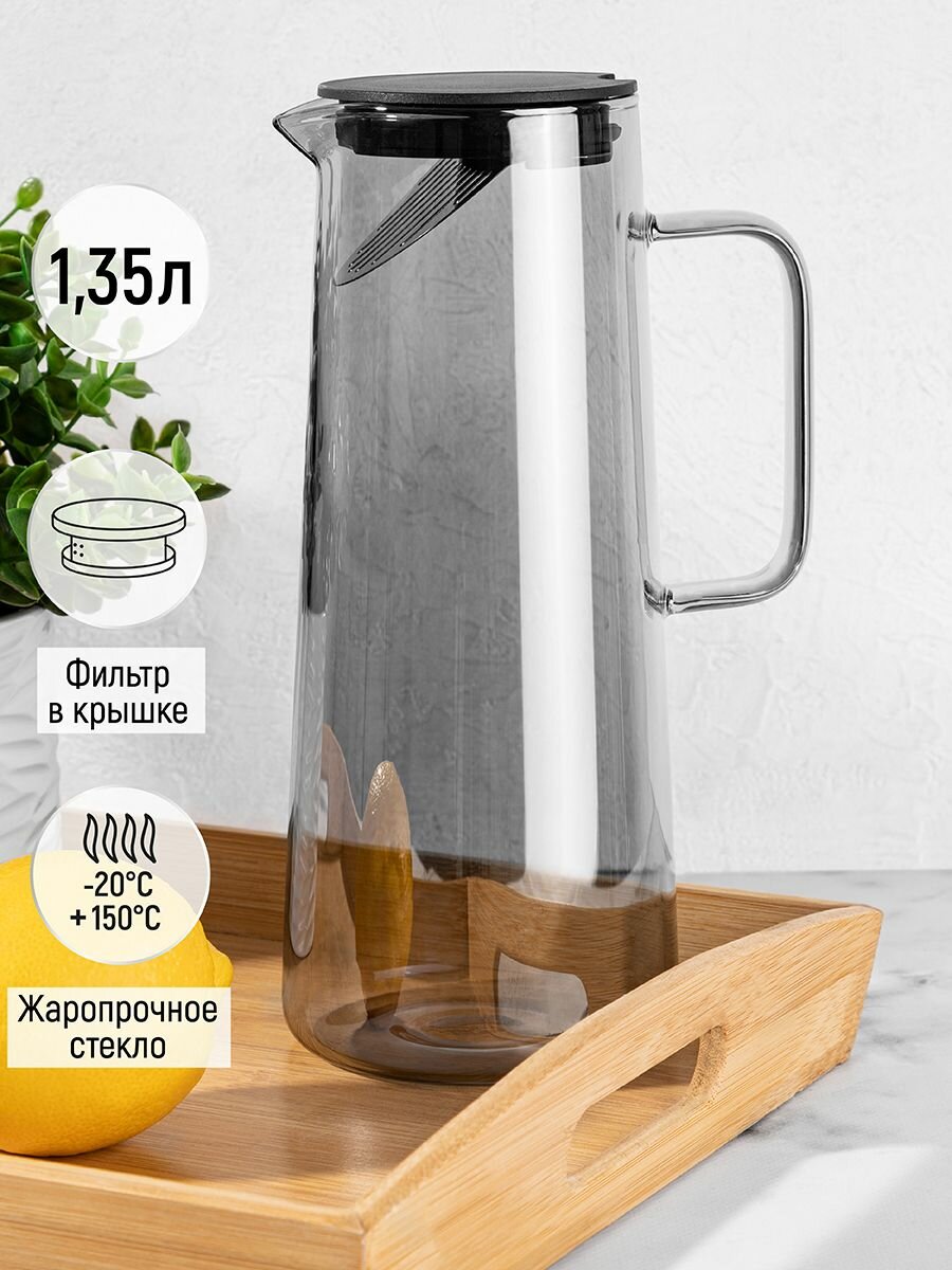 Кувшин 1,35 л 14х10,5х25 см Elan Gallery Crystal glass с пластиковой крышкой с металлическим фильтром и силиконовой прокладкой интересное: