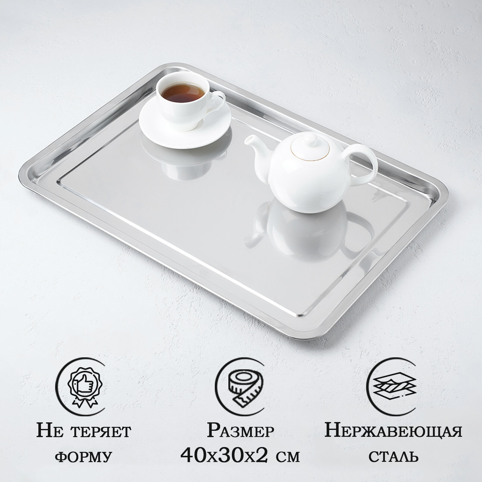 Поднос из нержавеющей стали, 59,5×39,5×1,5 см