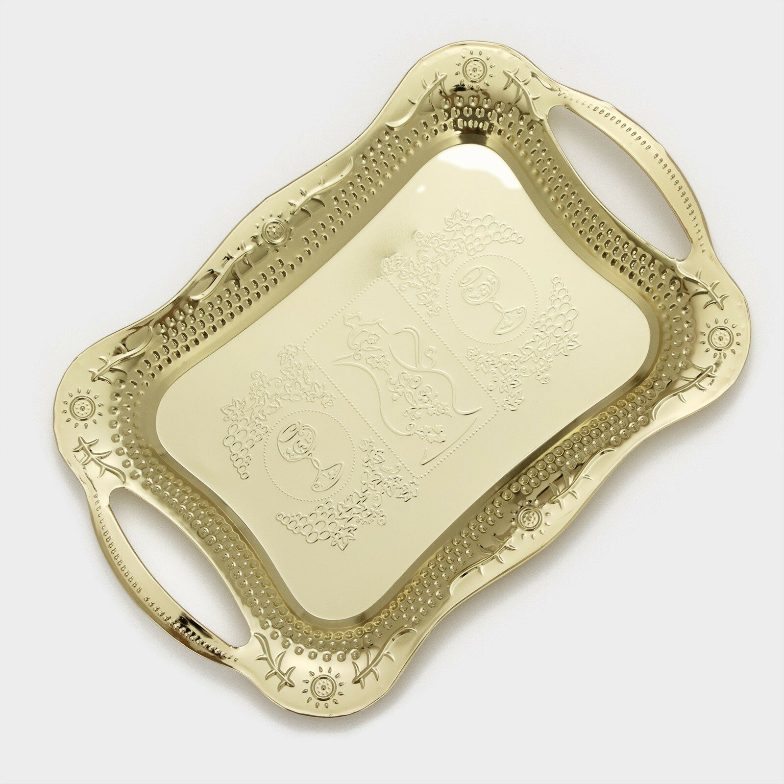 Поднос из нержавеющей стали с ручками "Изобилие. Золото", 38x25x2.7 см, цвет золотой