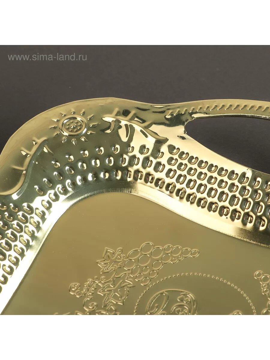 Поднос из нержавеющей стали с ручками «Изобилие. Золото», 31×20×2 см, цвет золотой