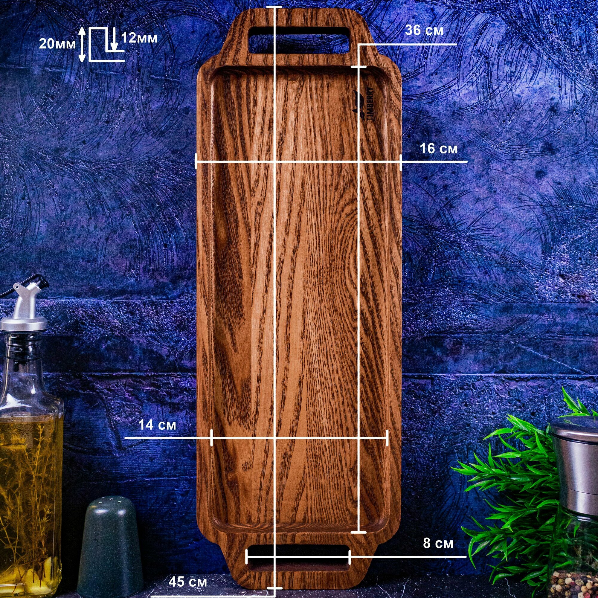 Поднос деревянный 45х16 см из дуба с ручками интересное: