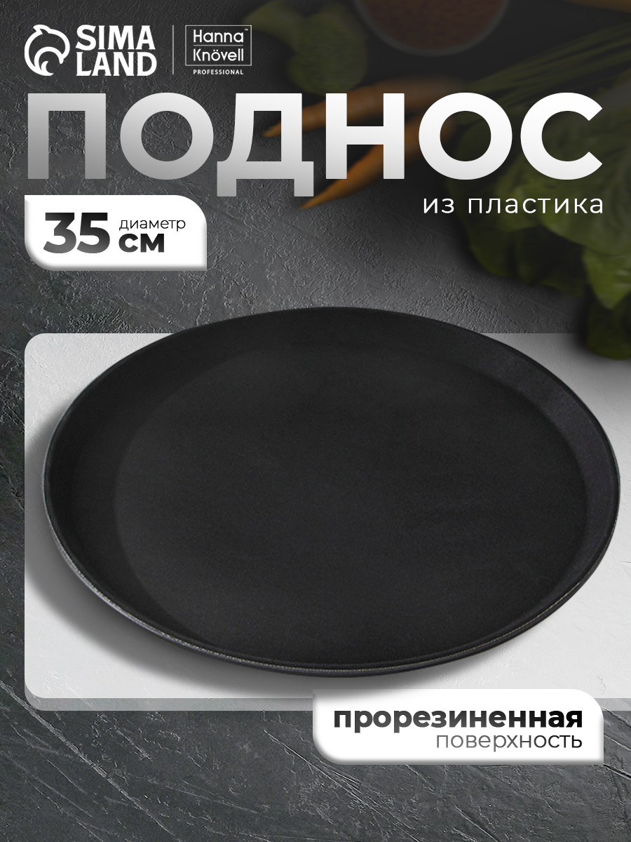 Поднос прорезиненный круглый, d=35 см, цвет чёрный