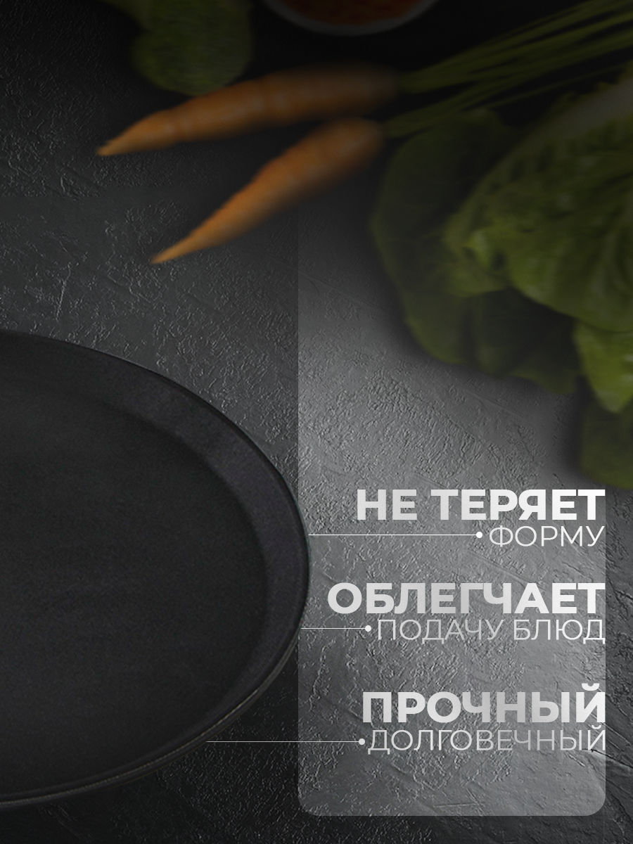Поднос прорезиненный для кухни SKYPHOS, диаметр 35см, нескользящий, черный