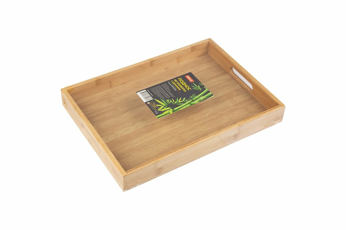 Поднос из бамбука с ручками и высокими бортами, размер 41 х 30 х 5 см, вес 0,75 кг интересное:
