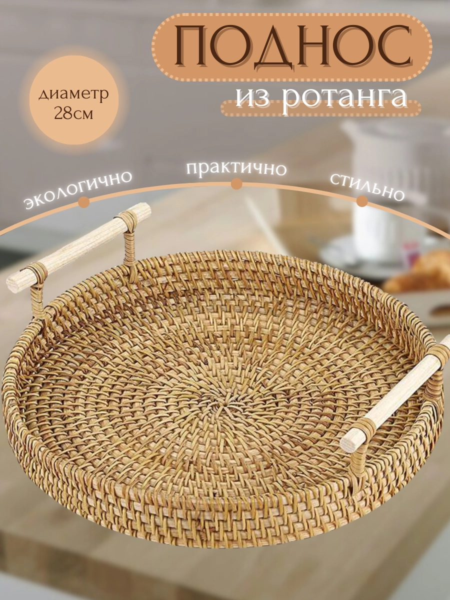 Поднос круглый из ротанга 28см интересное: