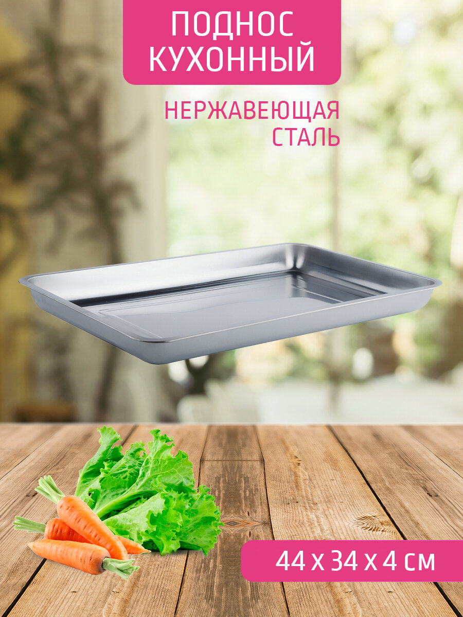 Поднос глубокий 59.5*39.5*4,5 см, нержавеющая сталь