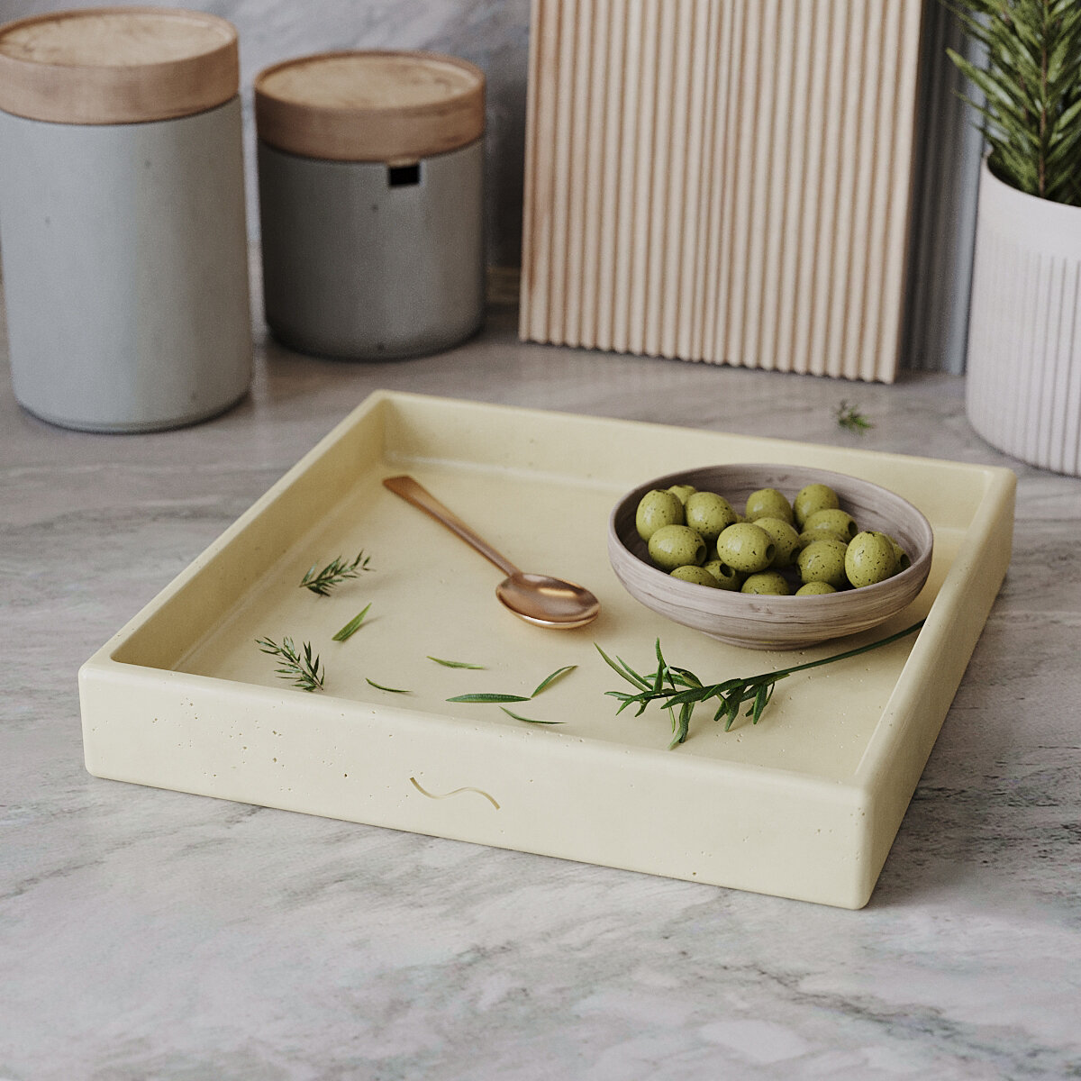 Поднос декоративный кухонный, подставка для мелочей, квадратный поднос Emily L, 21x21 см, бетон, кремовый матовый