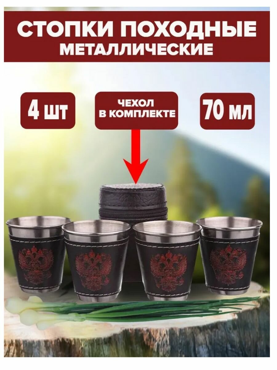 | Комплектация | Сувенирные походные стопки 50 мл. 4 шт., чехол |