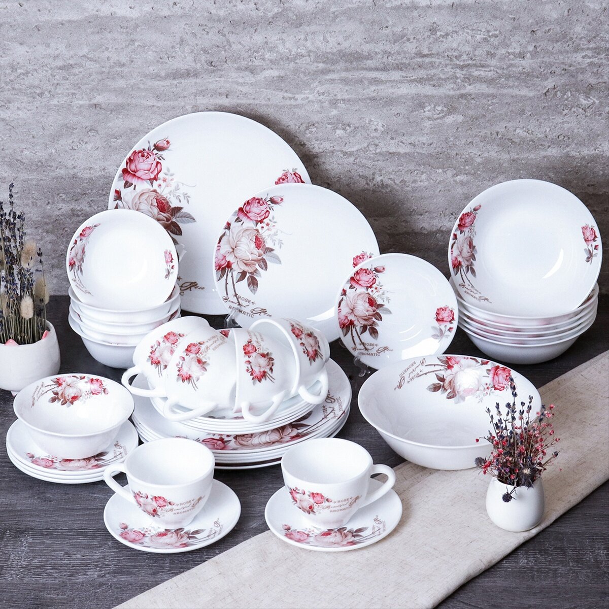 Столовый набор посуды из серии "Чайная роза" Дэй - 37 предметов на 6 персон