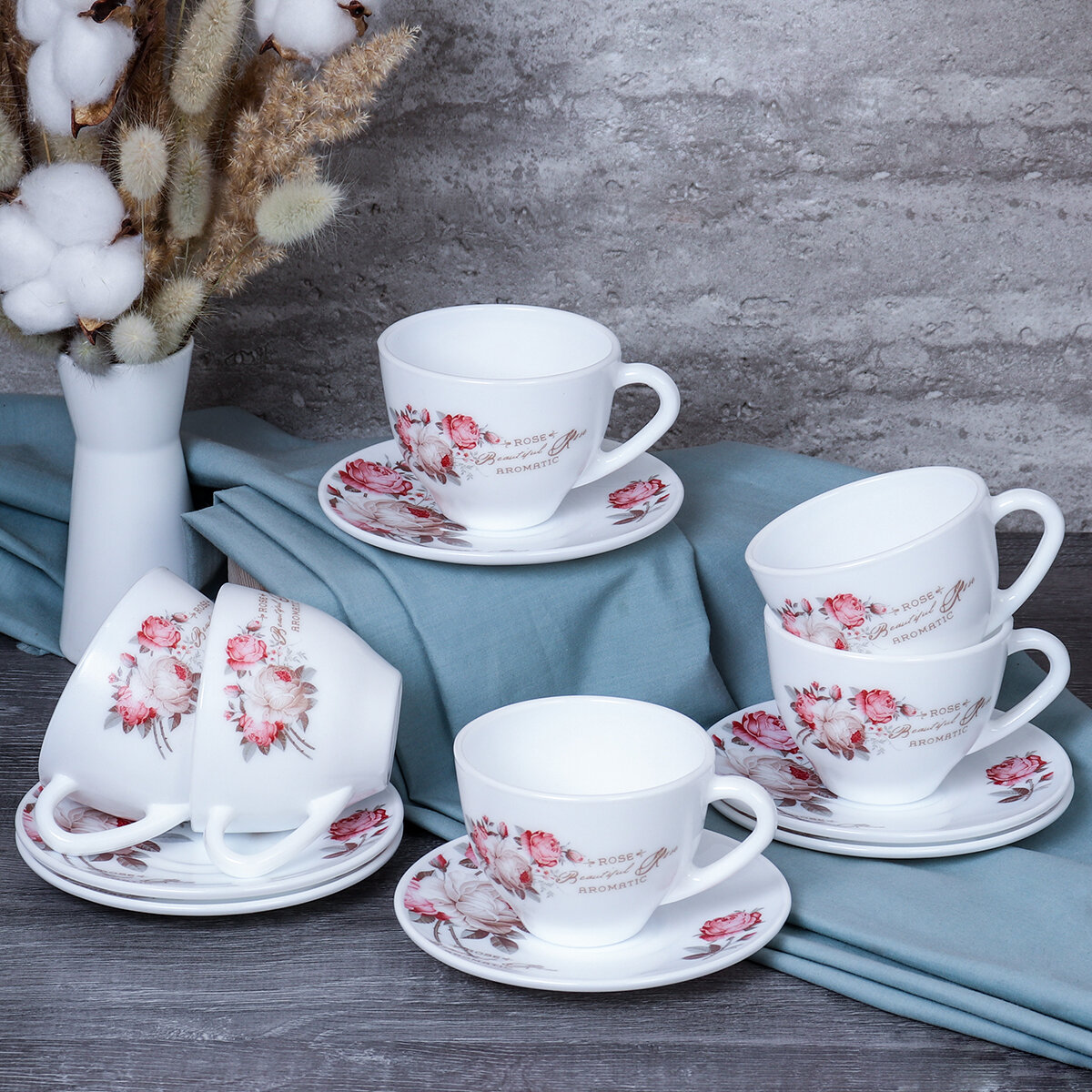 Столовый набор с чайными парами из серии "Чайная роза" дэй - 25 предметов