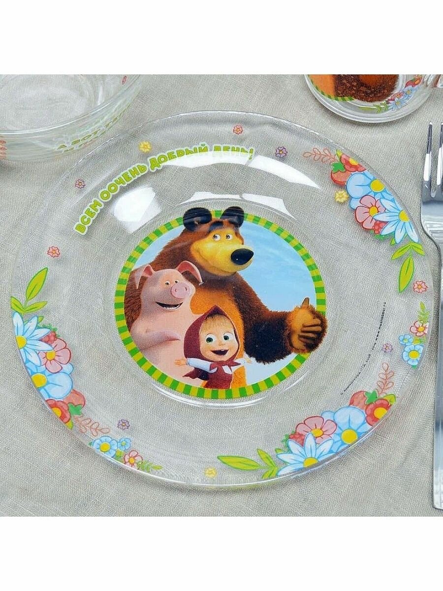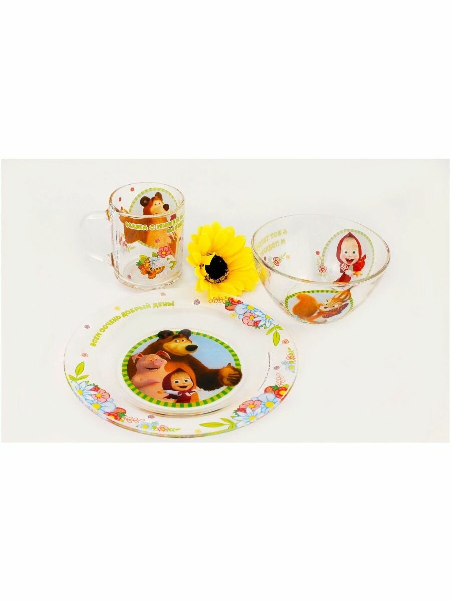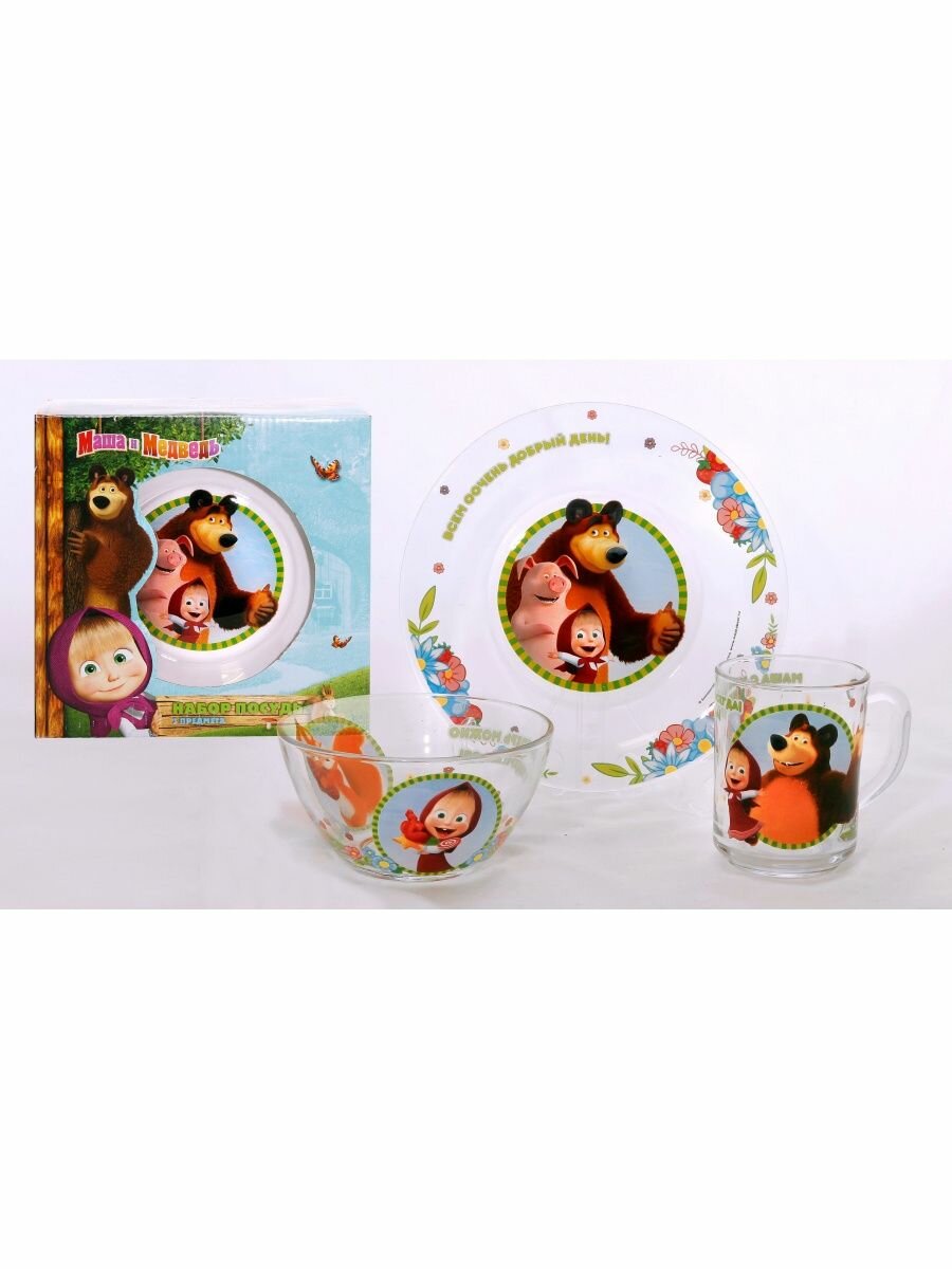 Набор Стекло 3ПР Маша И Медведь Добрый День круж-250млтар-195см Сал-13см 12 МФК ММН3-1 .