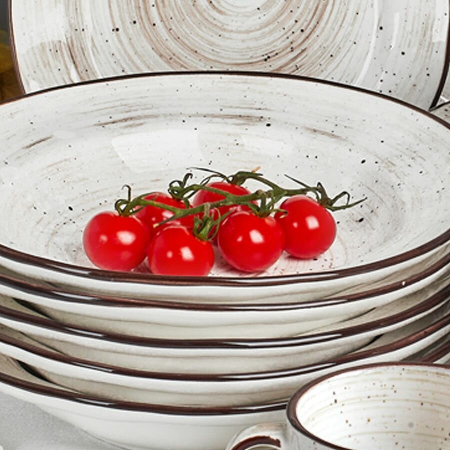 | Состав набора | салатник, супница, тарелка десертная, тарелка закусочная, тарелка обеденная, тарелка суповая, чашка |