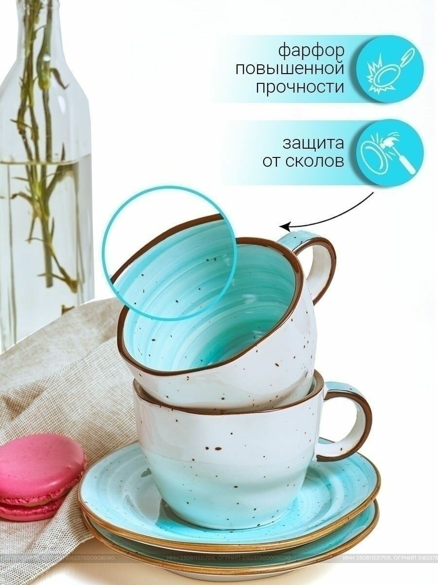 Купить Чайный сервиз на 6 персон, набор чайный: чайная пара фарфор 6 шт, чайник заварочный, сахарница