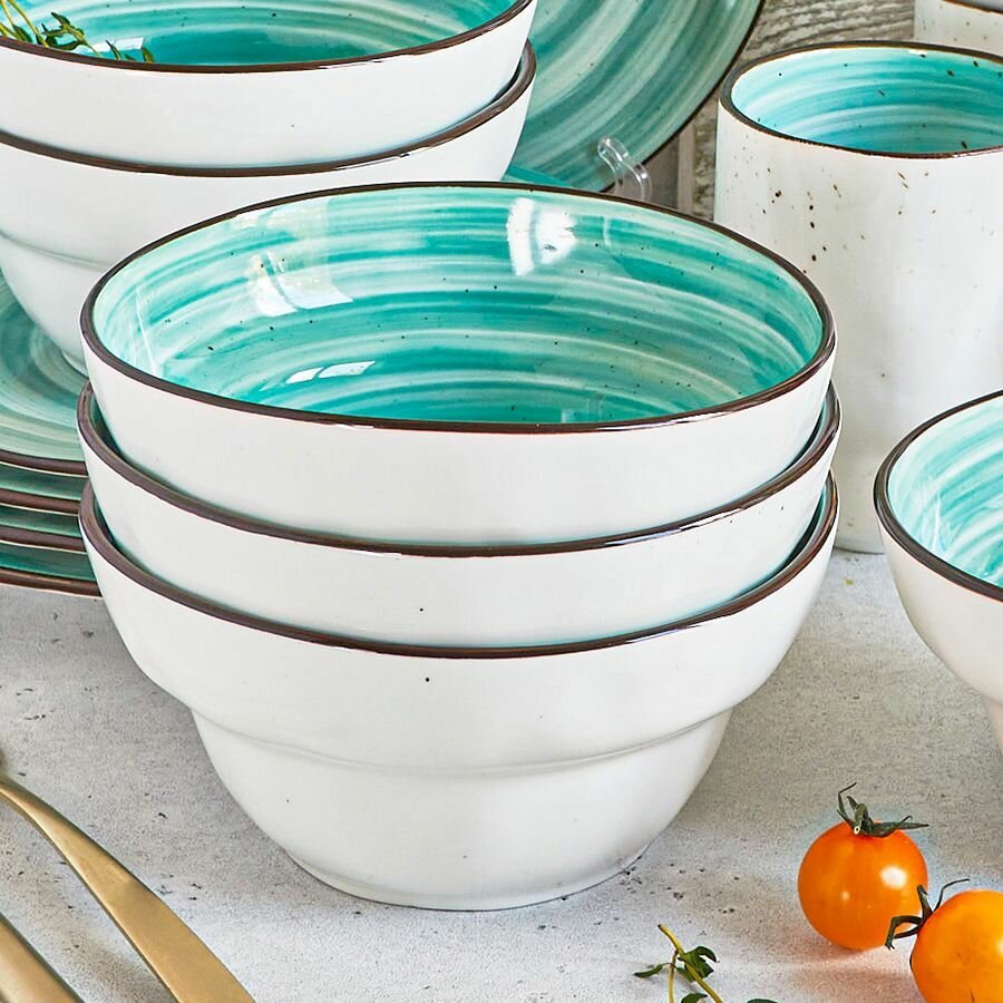 | Комплектация | 4 глубоких тарелки 350 мл, диаметр 22 см; 4 плоских тарелки диаметр 22,5 см; 1 большой салатник 1,2 л и 1 маленький салатник 750 мл |