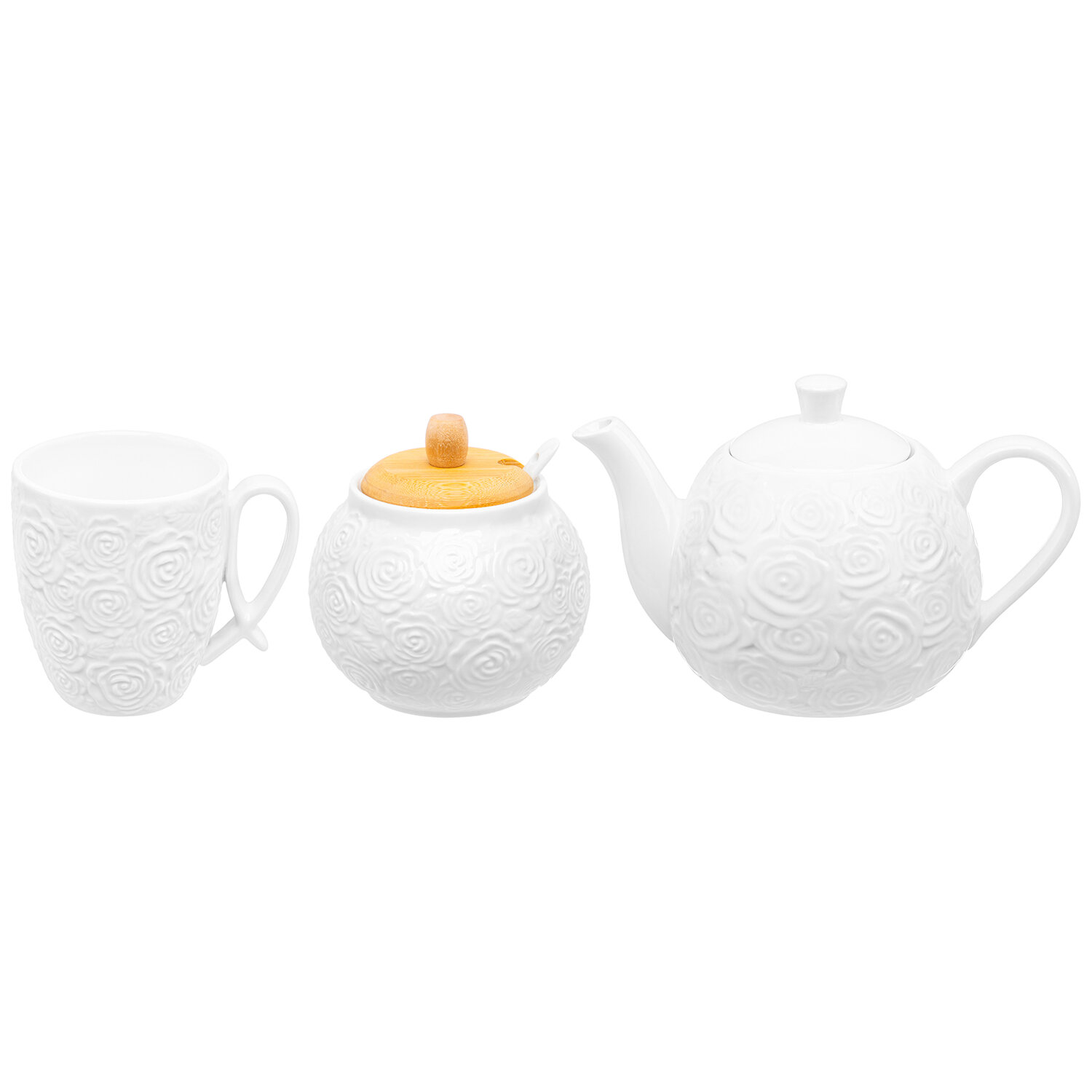 Купить Чайный набор чайник 900 мл, сахарница 620 мл, 6 кружек по 300 мл Elan Gallery Розы, на бамбуковой подставке