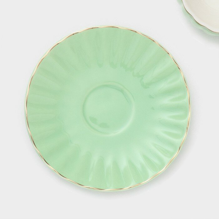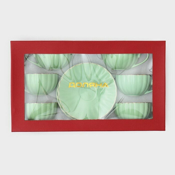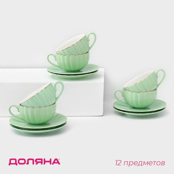 Купить Сервиз фарфоровый чайный Доляна «Вивьен», 12 предметов: 6 чашек 200 мл, 6 блюдец d=15 см, цвет зелёный