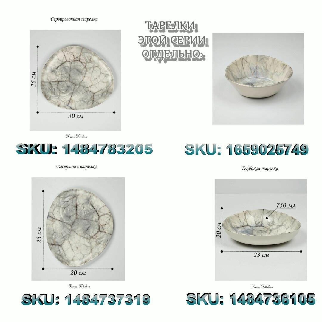 | Комплектация | сервировочные тарелки 6шт., десертные тарелки 6шт., глубокие (суповые) тарелки 6шт. |