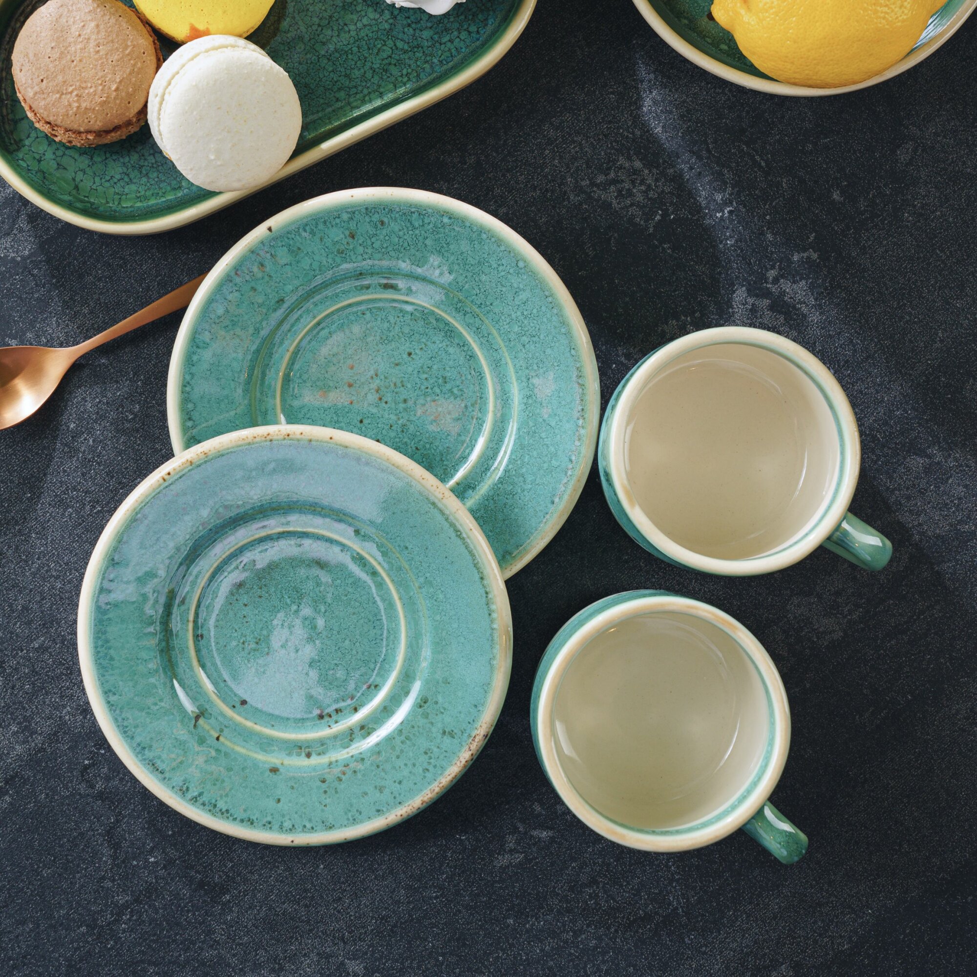Купить Набор кофейных пар на 2 персоны, чашки для чая, кофе и горячего шоколада, фарфор, зеленый с бежевым краем, 200 мл.