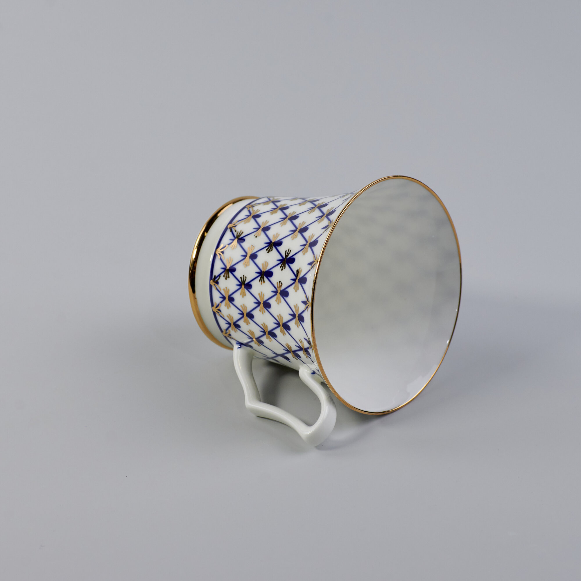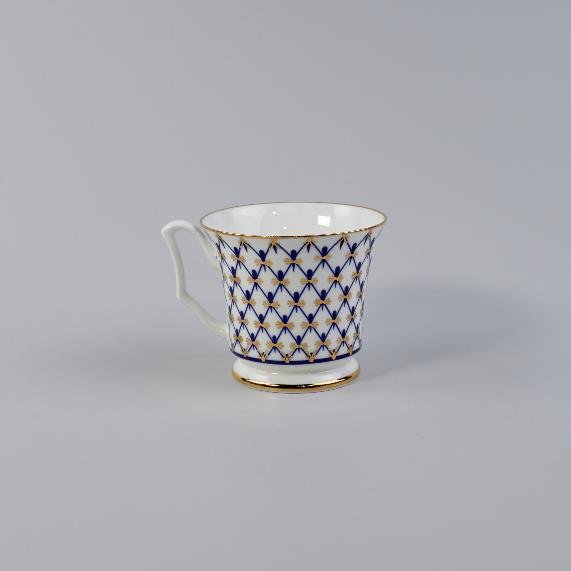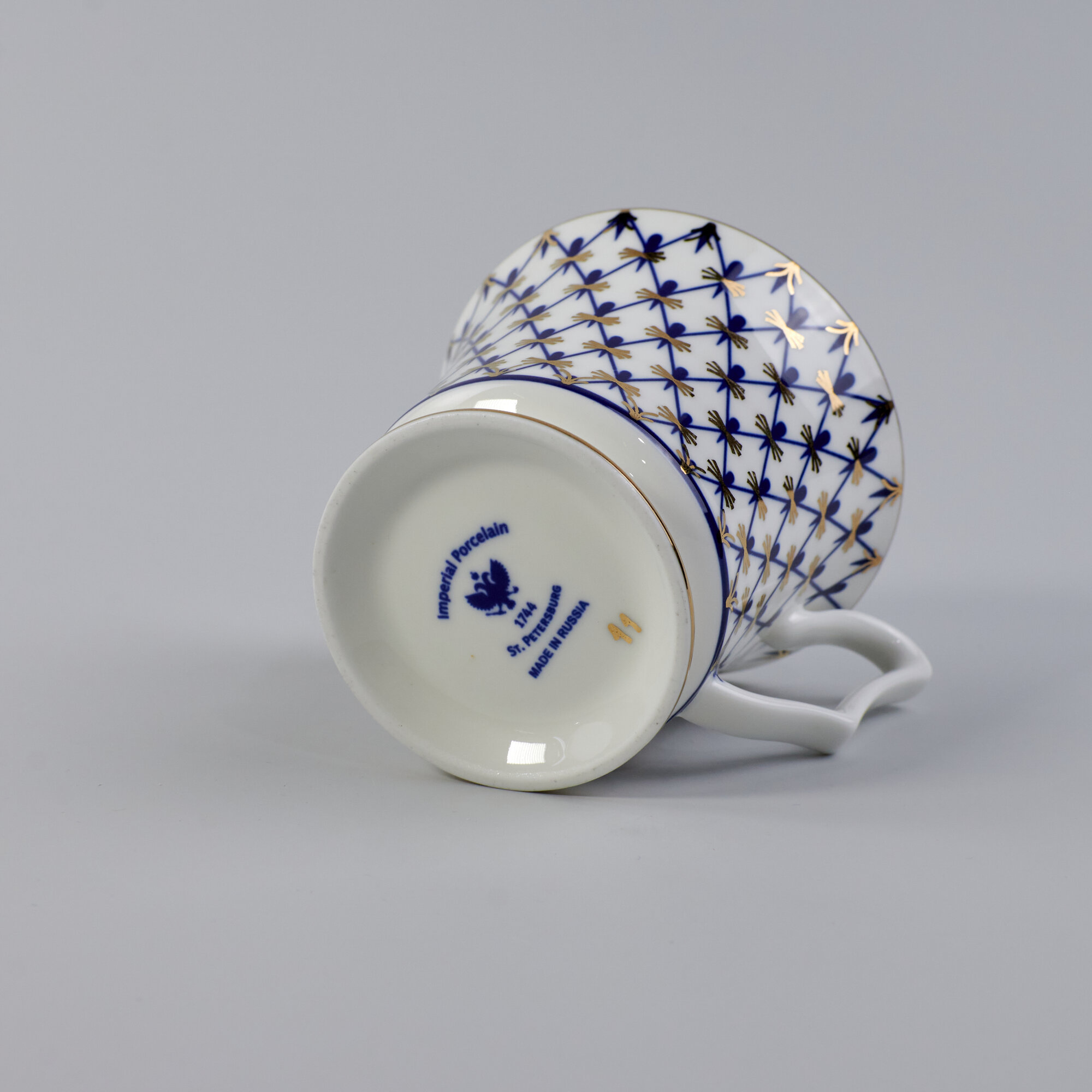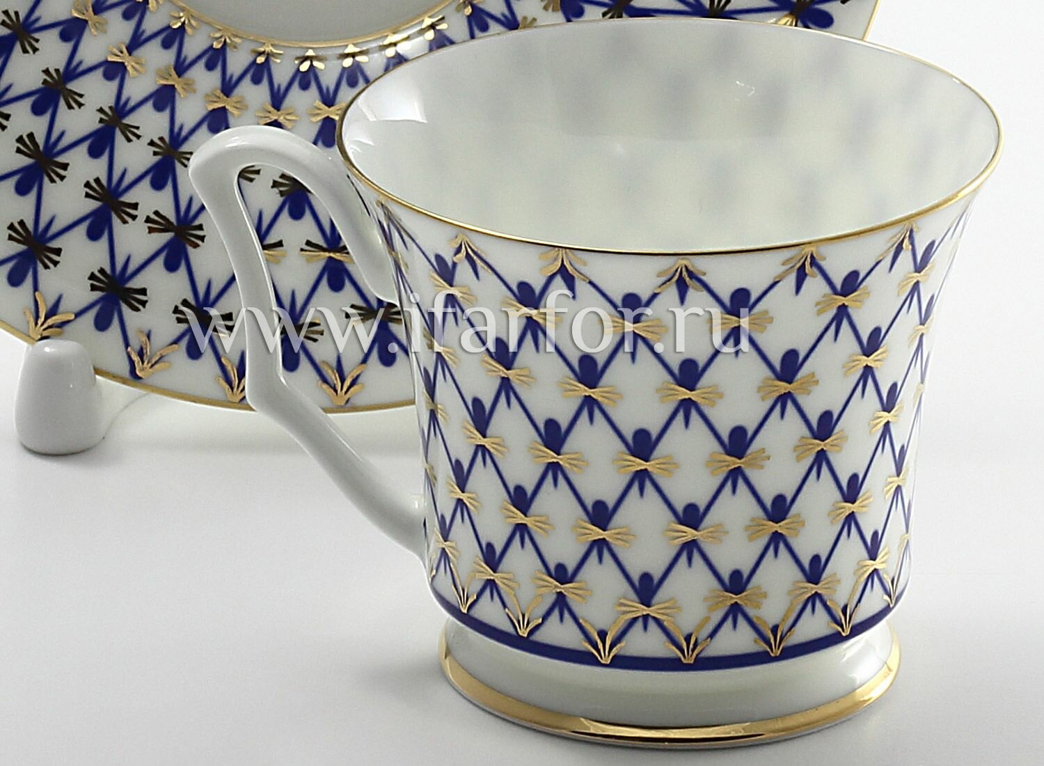 Купить Кофейная пара, чашка с блюдцем, 145 мл. Форма "Юлия", рисунок "Кобальтовая сетка". Костяной фарфор. Императорский фарфоровый завод ИФЗ ЛФЗ.