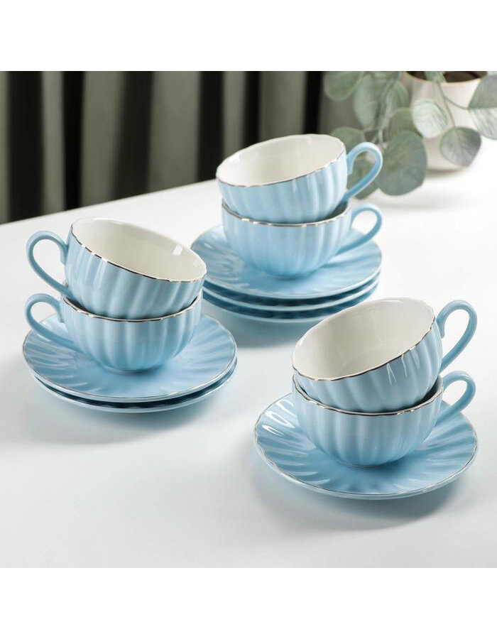 Купить Сервиз фарфоровый чайный Доляна «Вивьен», 12 предметов: 6 чашек 200 мл, 6 блюдец d=15 см, цвет голубой