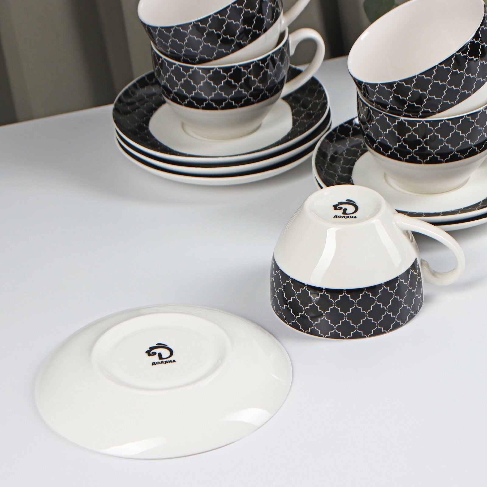 Купить Сервиз фарфоровый чайный Доляна «Марокко», 12 предметов: 6 чашек 280 мл, 6 блюдец d=15 см, цвет белый и чёрный