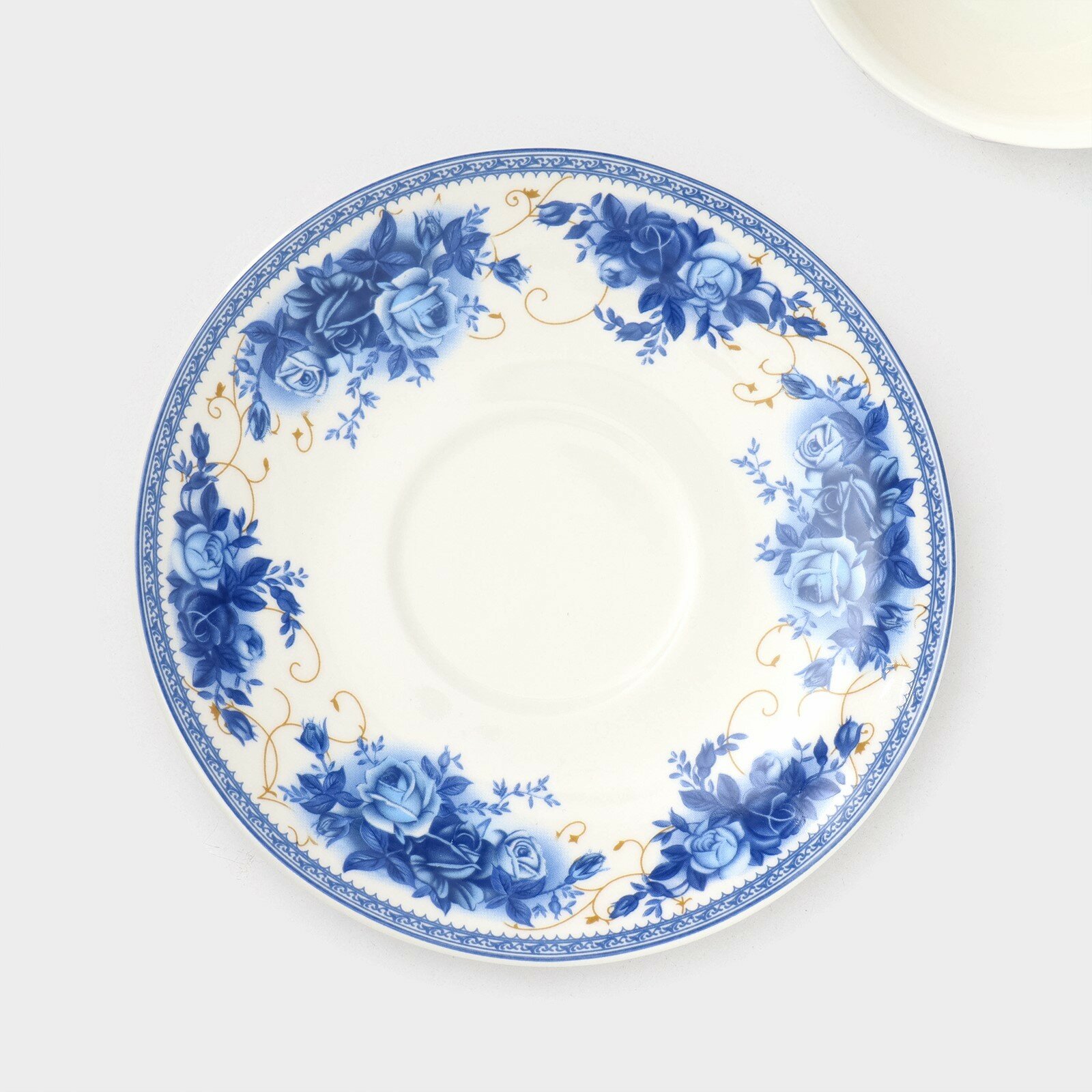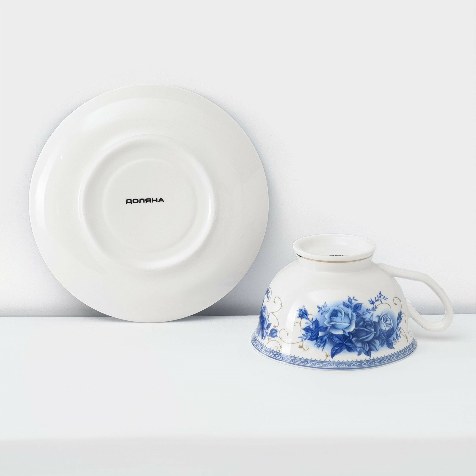 Чайная пара фарфоровая Доляна «Вивьен», 2 предмета: чашка 200 мл, блюдце d=15 см, цвет голубой