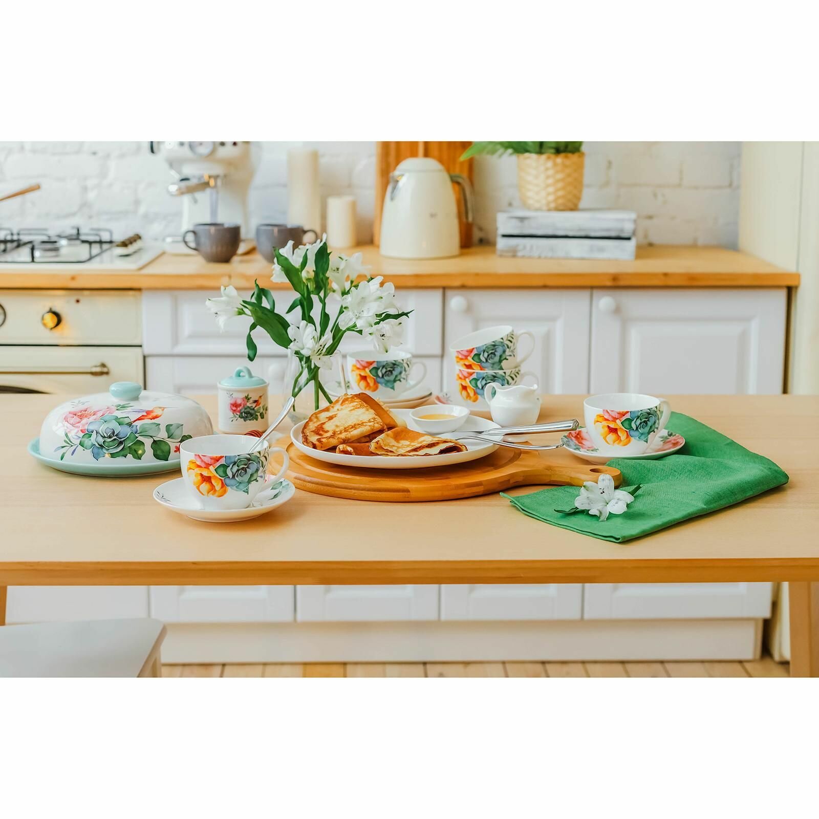 | Состав набора | блюдце, кружка, подставка, тарелка десертная, чайник, чашка |