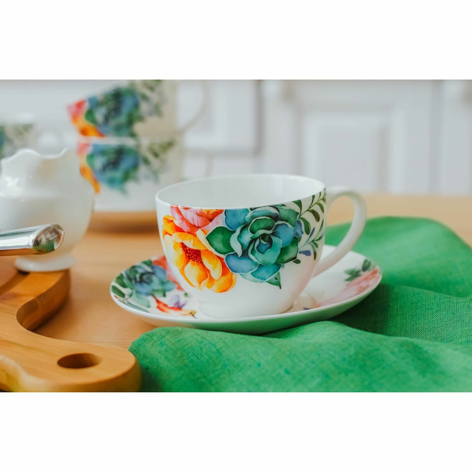 Чайная пара Доляна фарфоровая "Вивьен " чашка 200 мл, блюдце 15 см, зеленый