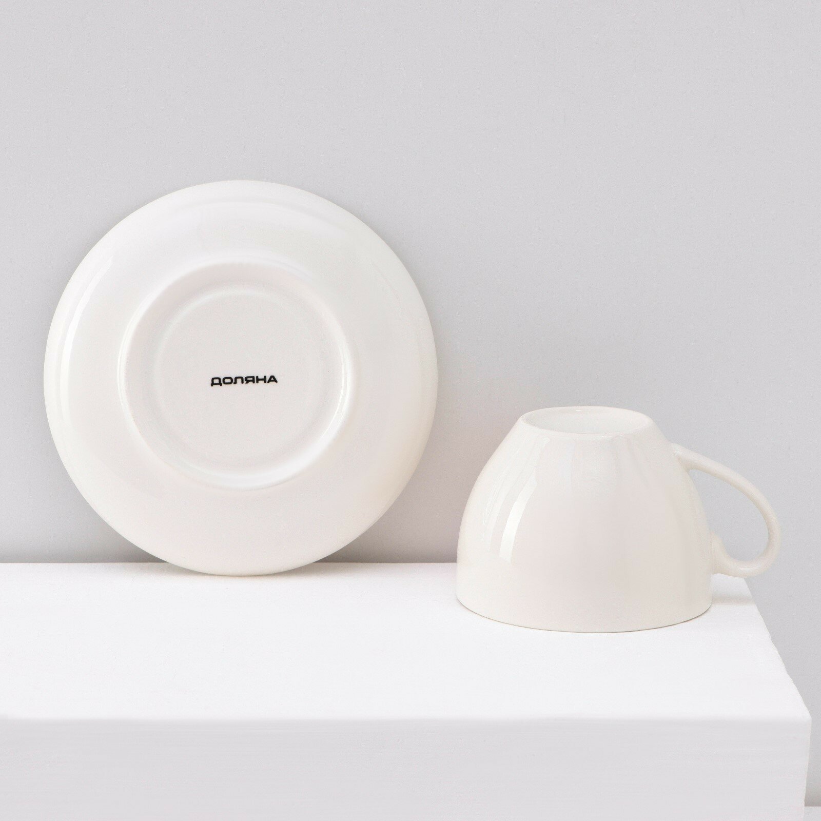 Чайная пара фарфоровая Доляна "Вивьен", 2 предмета: чашка 200 мл, блюдце d=15 см, цвет серый