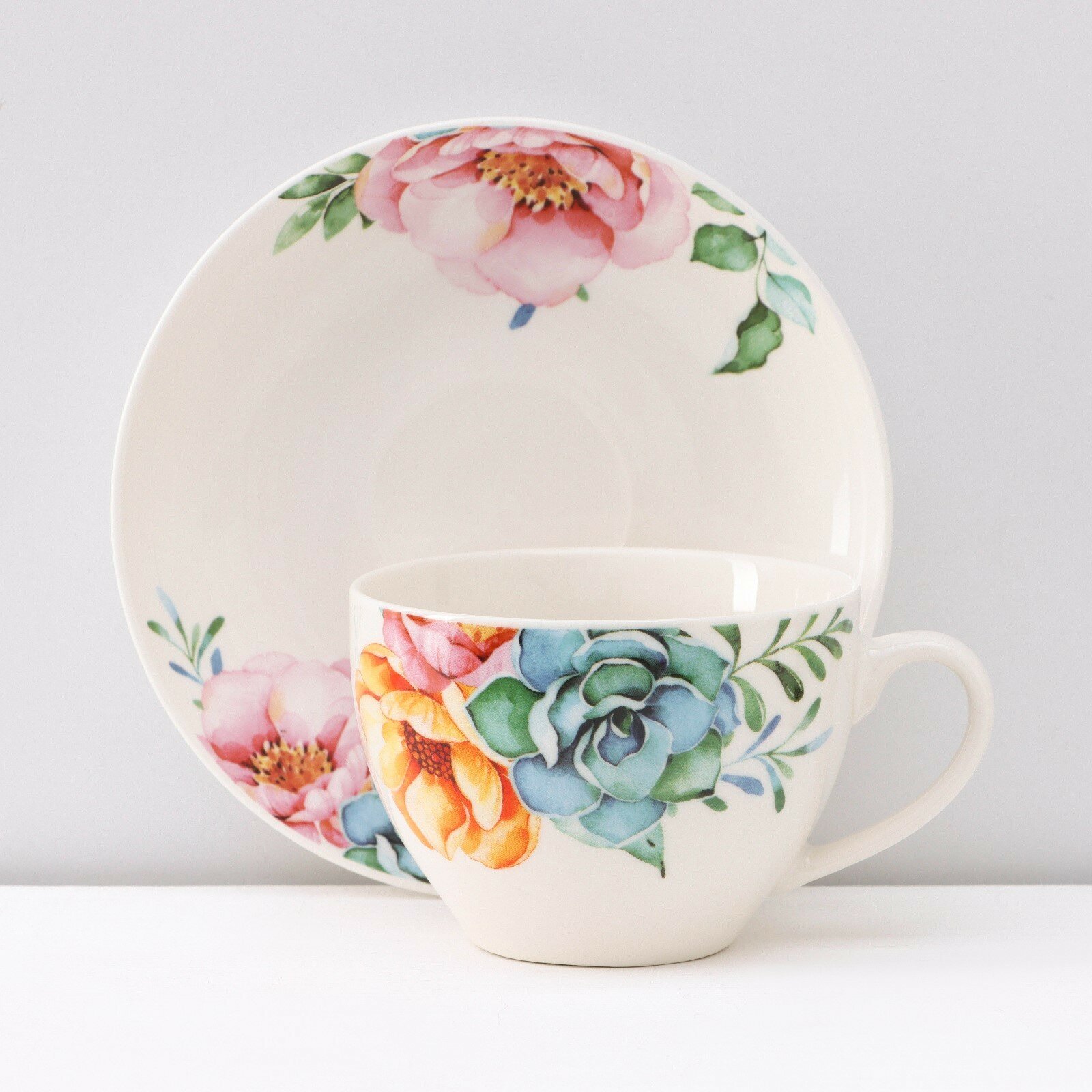 Чайная пара фарфоровая «Вивьен», 2 предмета: чашка, блюдце
