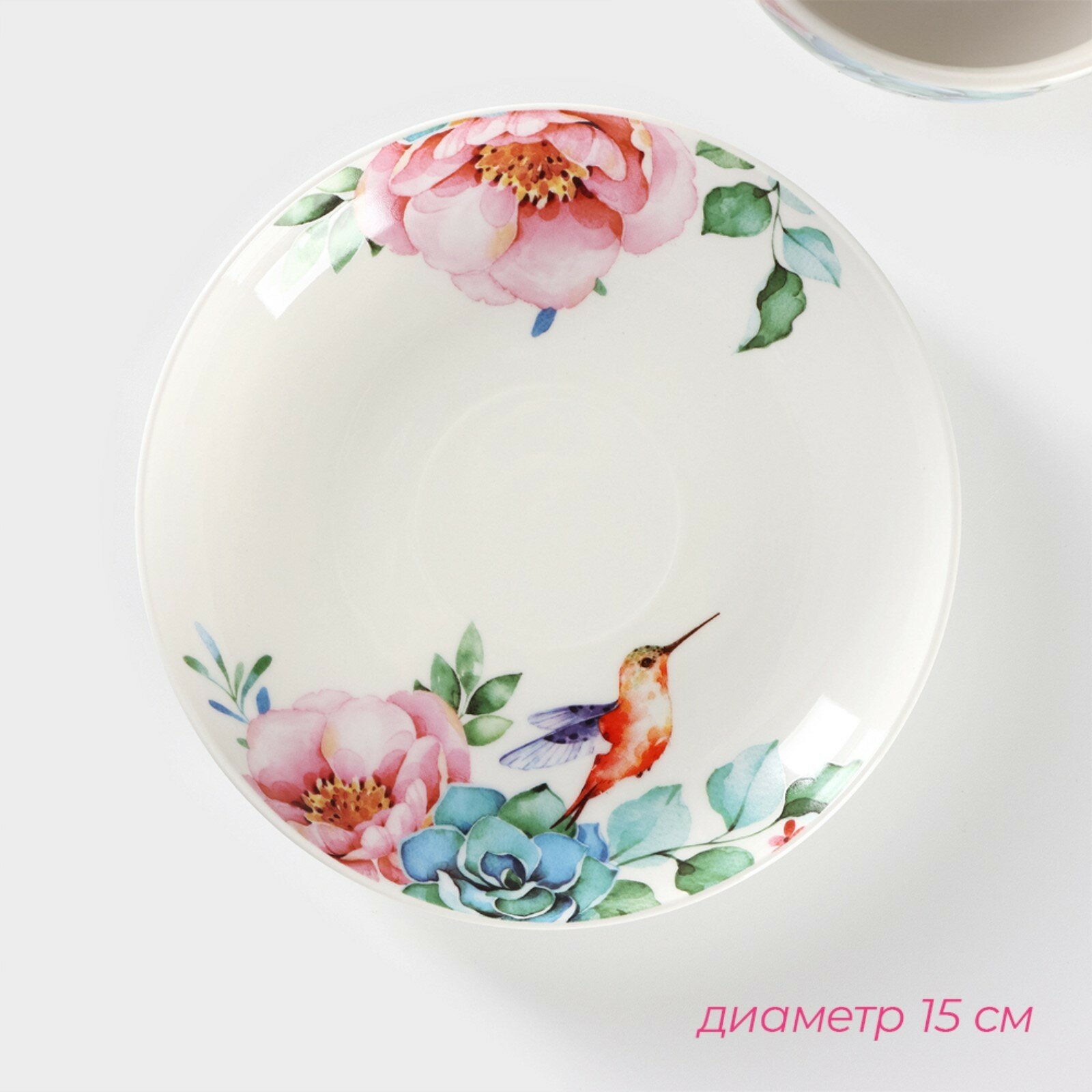 Чайная пара фарфоровая Доляна «Вивьен», 2 предмета: чашка 200 мл, блюдце d=15 см, цвет голубой