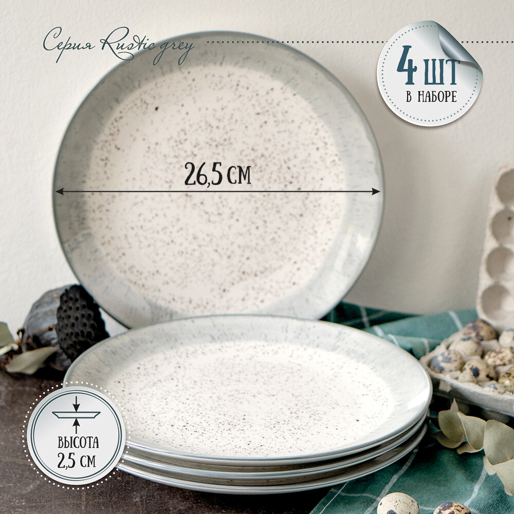 Купить Набор посуды столовой на 4 персоны 16 предметов фарфор Rustic grey. Столовый сервиз обеденный набор тарелок c кружками
